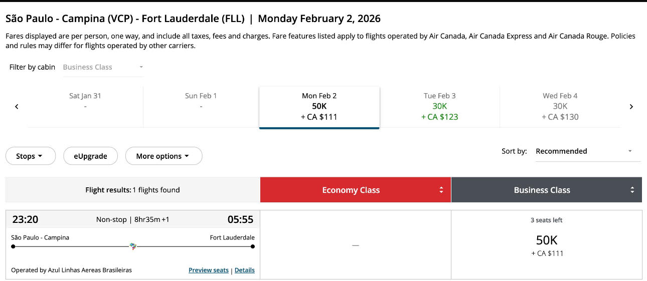 Apenas 50.000 pontos trecho. Emissão via Aeroplan voando Air Canada.