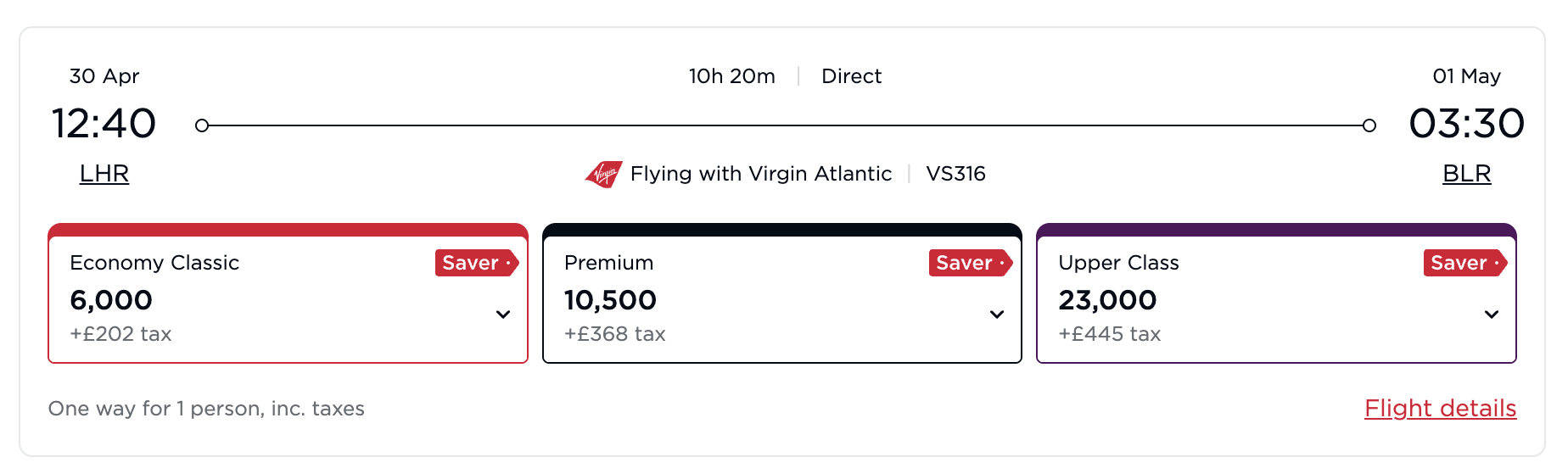 O programa Flying Club implementou recentemente uma tabela dinâmica para voos da Virgin Atlantic e manteve a tabela fixa para parceiros. Porém, cada parceiro pode ter a sua própria tabela de resgate.