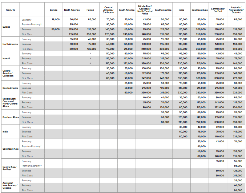 O programa Miles&More possui uma tabela dinâmica para voos com a Lufthansa e uma tabela para voos award com parceiros (tabela abaixo)