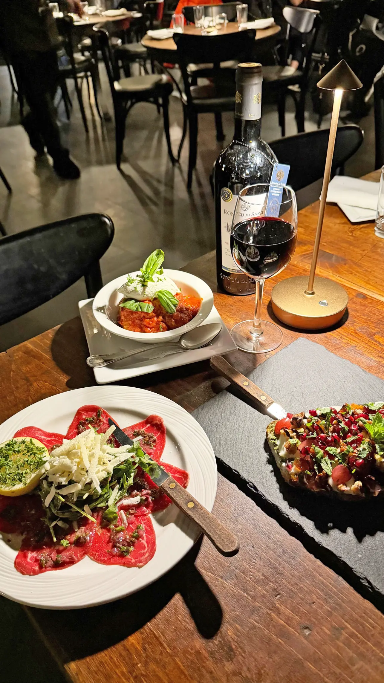 O ambiente do Bella Luna traduz muito bem o conceito de trattoria moderna nova-iorquina: acolhedor, charmoso e com personalidade. A iluminação quente cria uma atmosfera confortável logo na chegada, enquanto as prateleiras repletas de garrafas ajudam a construir aquele clima italiano clássico que remete às casas tradicionais da Europa. As mesas são bem postas, com cuidado nos detalhes, transmitindo a sensação de um restaurante que valoriza a experiência do cliente desde o primeiro olhar.