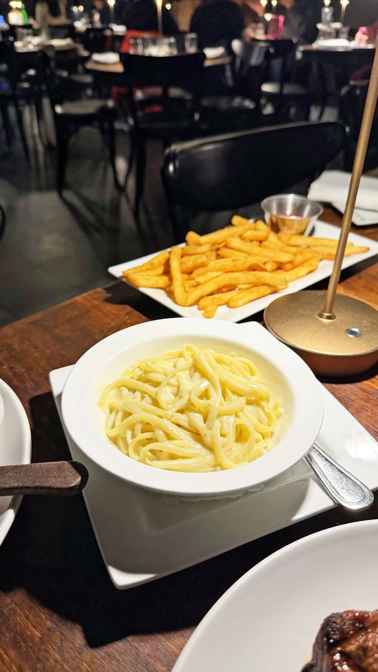 É um menu que equilibra massas confortáveis com opções mais elaboradas de frutos do mar.