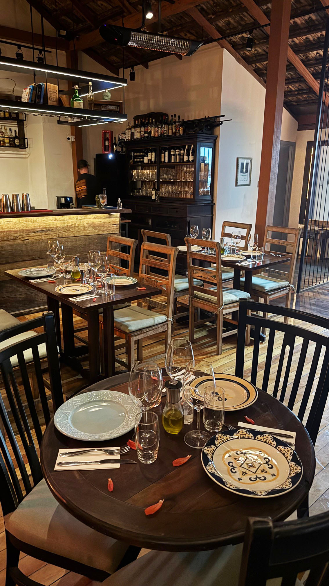 Como visitei o restaurante em uma noite fria do sul do país, o ambiente se tornou ainda mais acolhedor. Aquecedores bem posicionados garantiam o conforto térmico, enquanto a decoração aquecida pela luz amarela criava uma atmosfera intimista e agradável. Também fui agradavelmente surpreendido oferecerem uma manta para me aquecer. Um gesto de atenção ao cliente que demonstra carinho e cuidado nos detalhes.