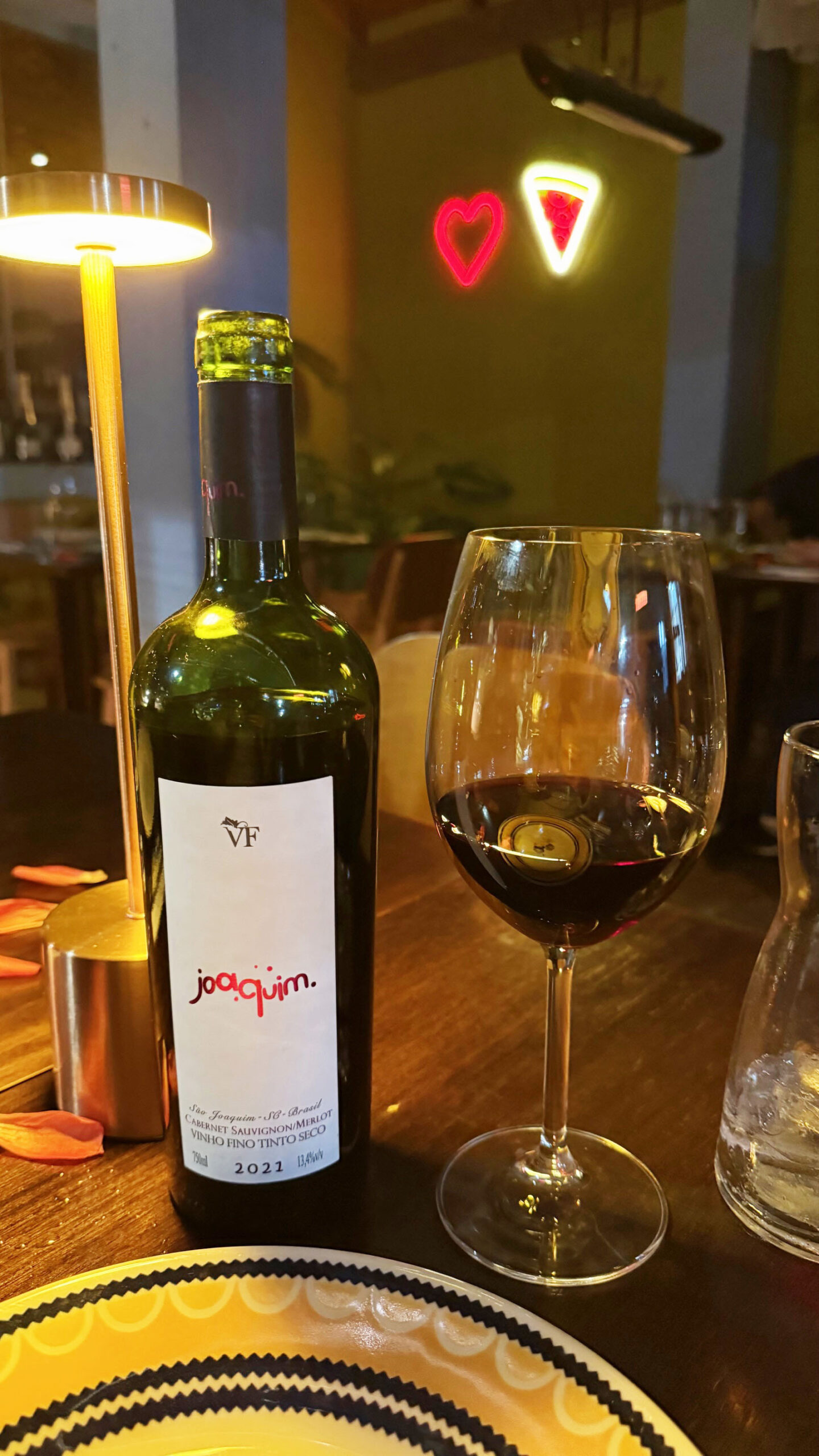 Para acompanhar, escolhi um vinho tinto de altitude catarinense, produzido na Serra, em vinícolas que vêm ganhando reconhecimento nacional e internacional. A carta de vinhos da Bere Birra tem curadoria cuidadosa, com destaque para rótulos do próprio estado – algo que mostra o compromisso da casa com a valorização do terroir local.