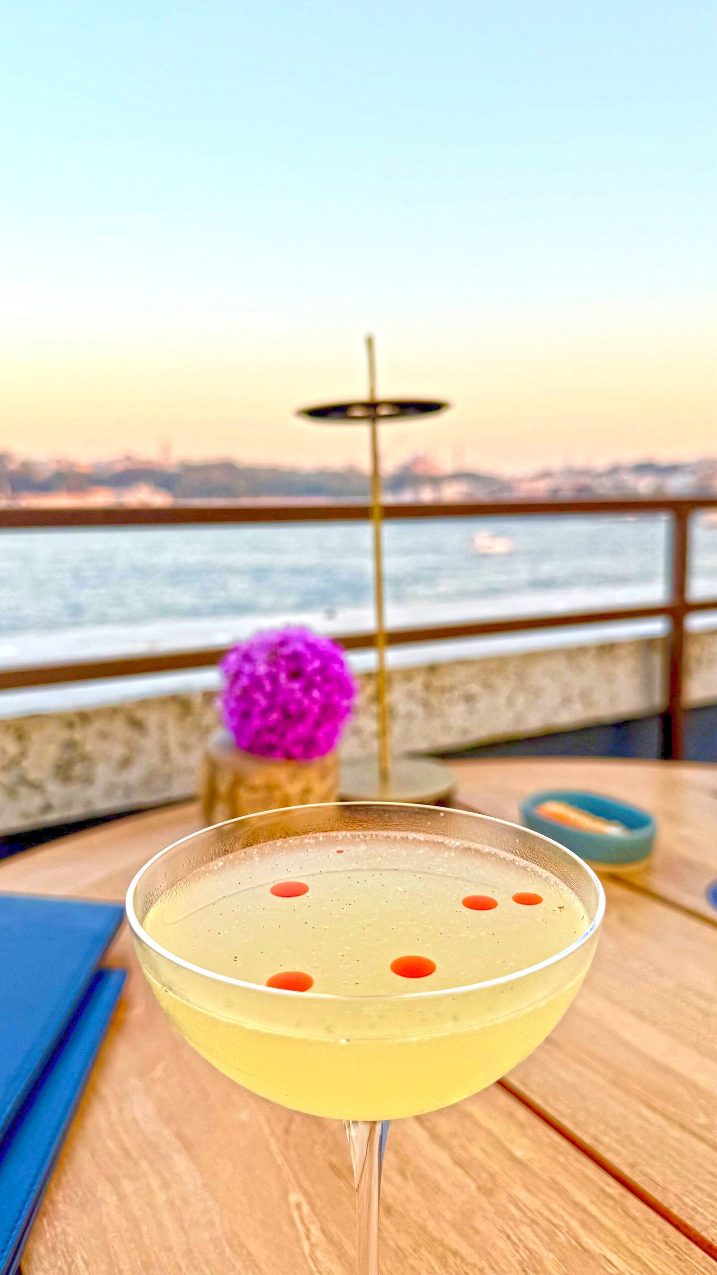 É no rooftop aberto que a experiência se torna verdadeiramente memorável: com vista panorâmica para o Bósforo e para a Península Histórica de Istambul, os assentos ao ar livre permitem contemplar a cidade, seja sob o azul intenso do fim de tarde ou sob a iluminação dourada das mesquitas ao anoitecer.