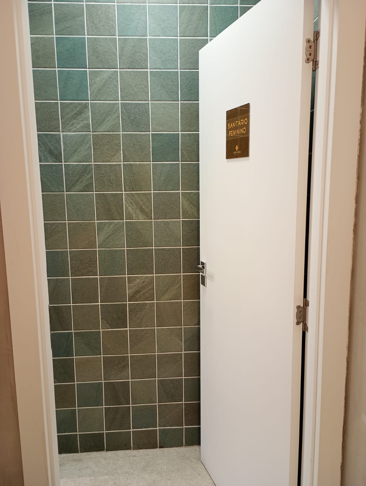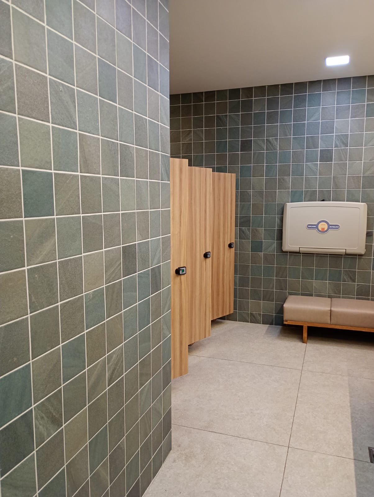 Os banheiros individuais, com excelente tamanho, que estão sempre limpos, cheirosos, adaptados à acessibilidade e com trocador para bebês disponível. A decoração é minimalista, porém bem aconchegante.