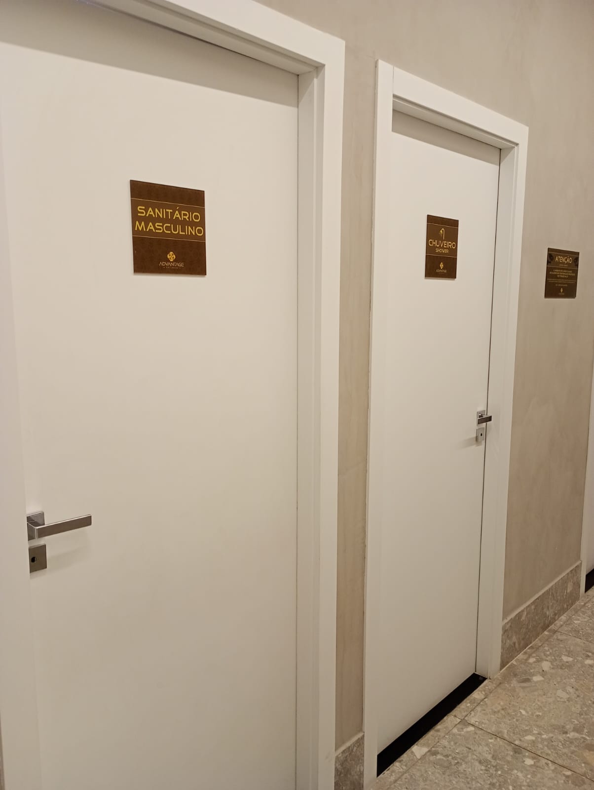 Há uma sala de banho disponível no espaço, e para utilizar é preciso pagar à parte do seu acesso.