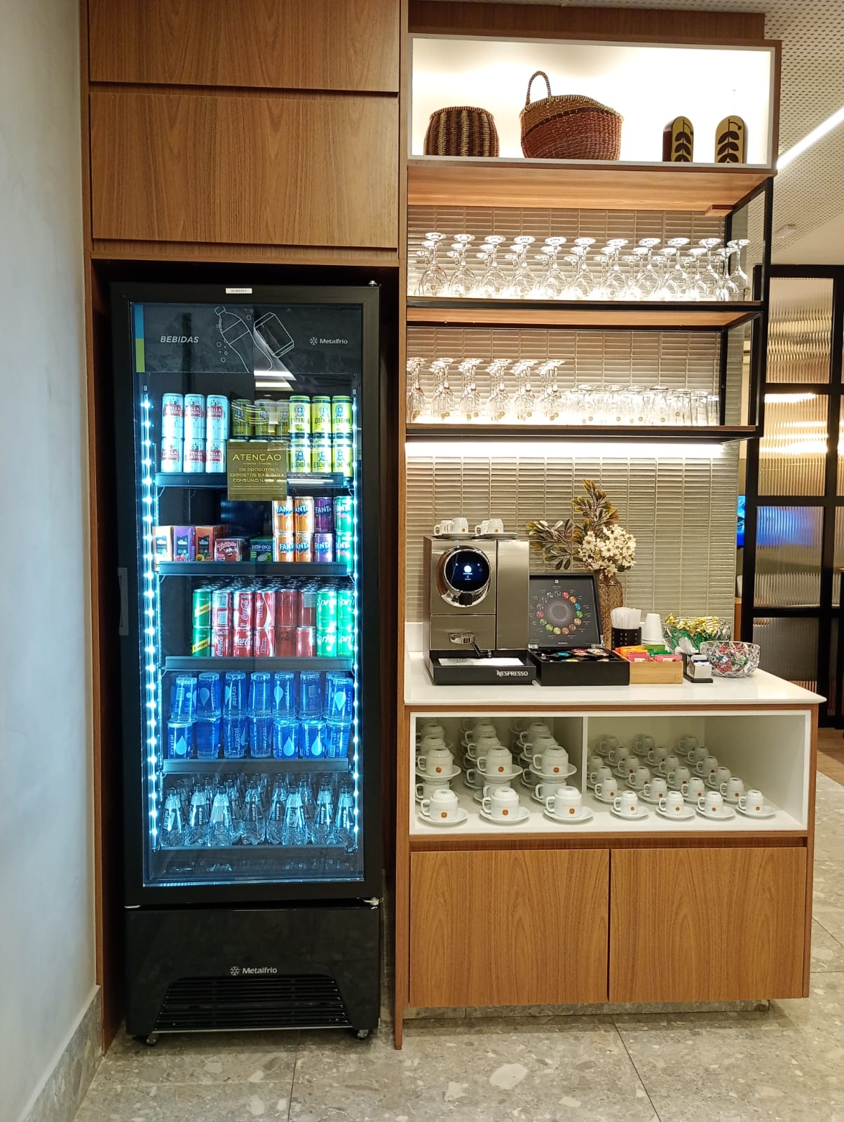 O padrão do Advantage VIP Lounge é oferecer boas e variadas opções de alimentos. Na sala você encontra comida de verdade: massas, sopas e caldos, frutas, opções de proteínas, além de doces, salgadinhos e snacks variados.