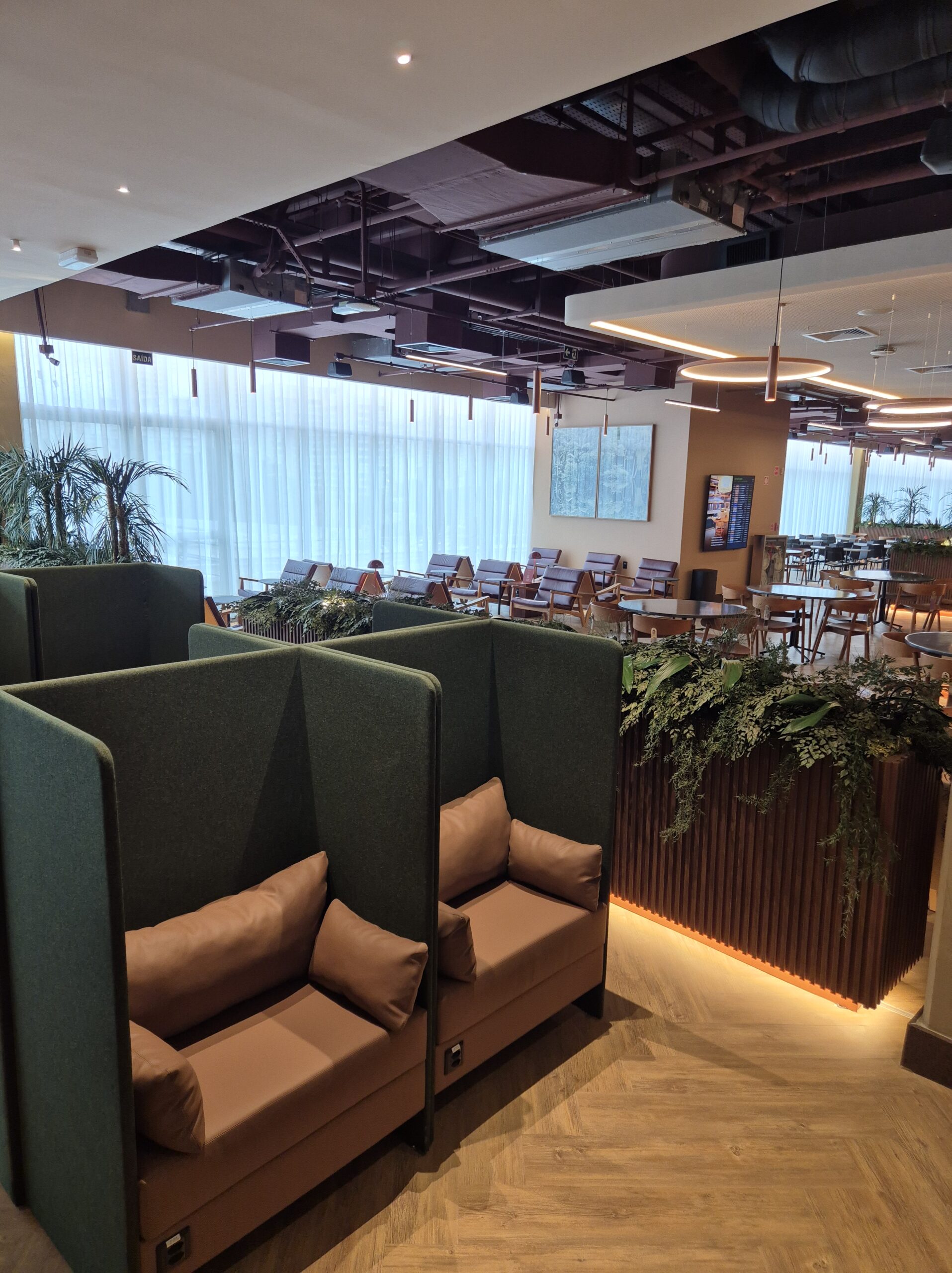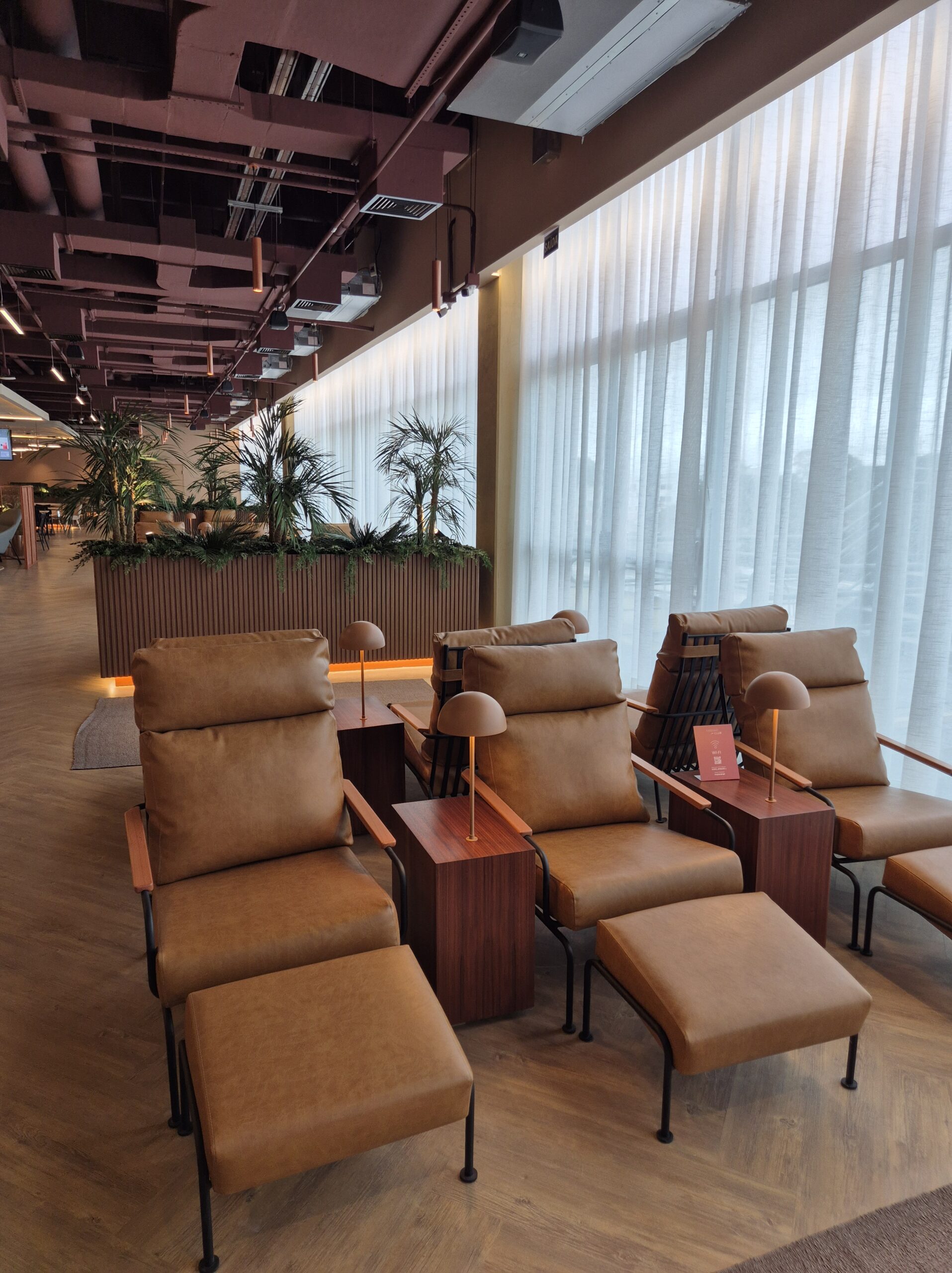 Com 1.100 m² e capacidade para receber até 283 passageiros ao mesmo tempo, a sala foi projetada para oferecer conforto e praticidade aos viajantes. O ambiente conta com áreas de descanso, cabines privativas para reuniões, espaço coworking e uma área dedicada especialmente para crianças.