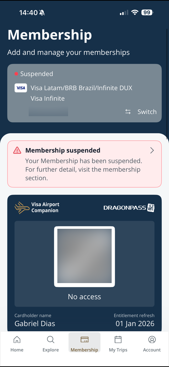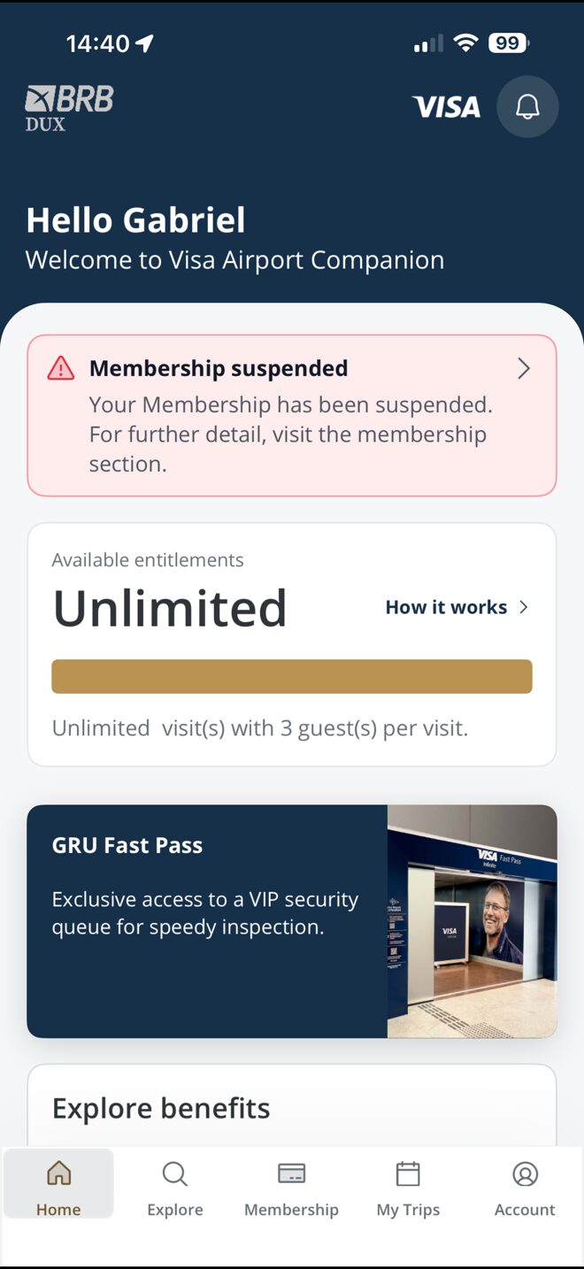Nas últimas semanas o BRB DUX Visa Infinite já enfrentava falhas recorrentes no acesso às salas VIP, e hoje teve mais um revés: a suspensão completa da associação ao programa Visa Airport Companion (VAC).