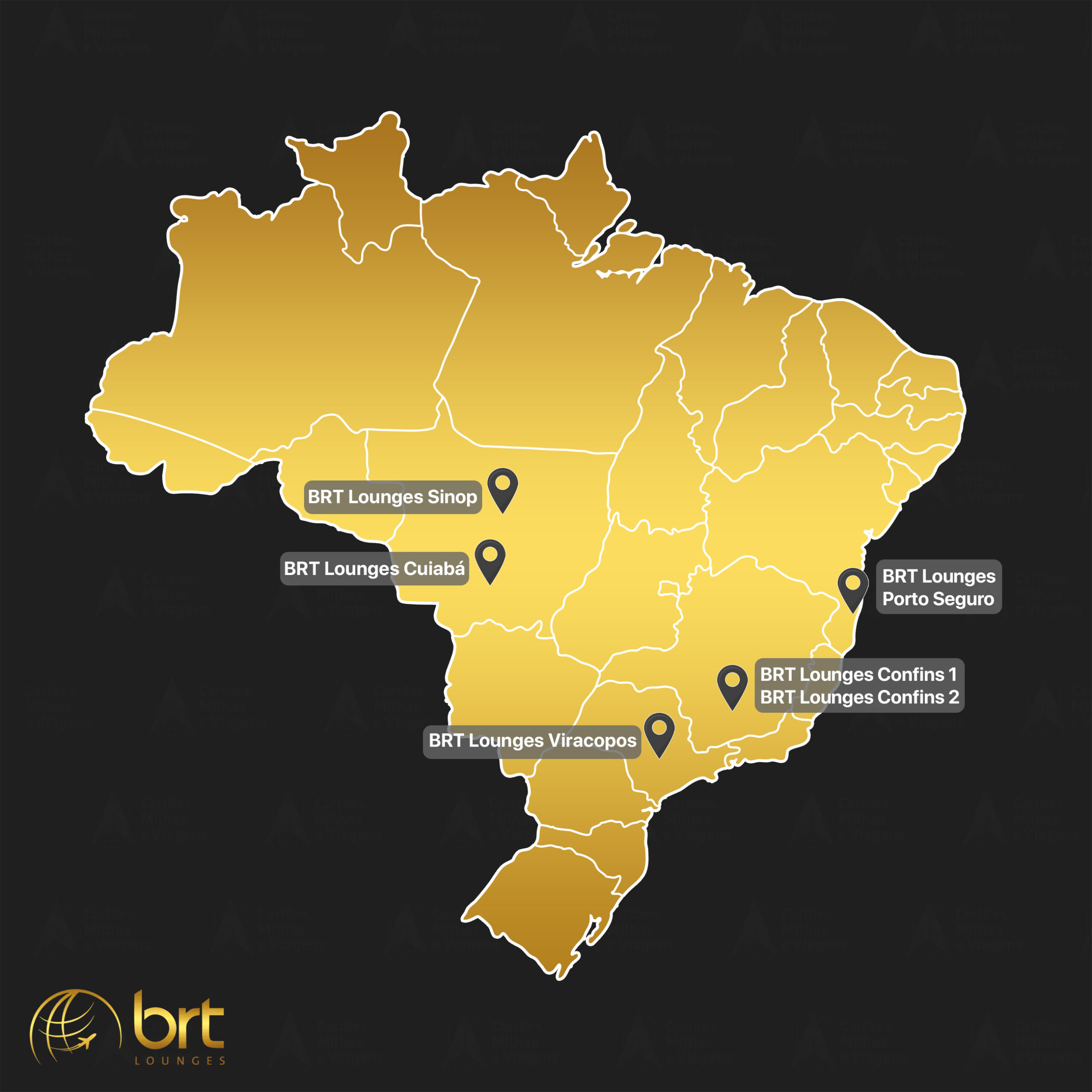 Confira no mapa abaixo todas as localidades onde há uma sala BRT Lounges disponível.