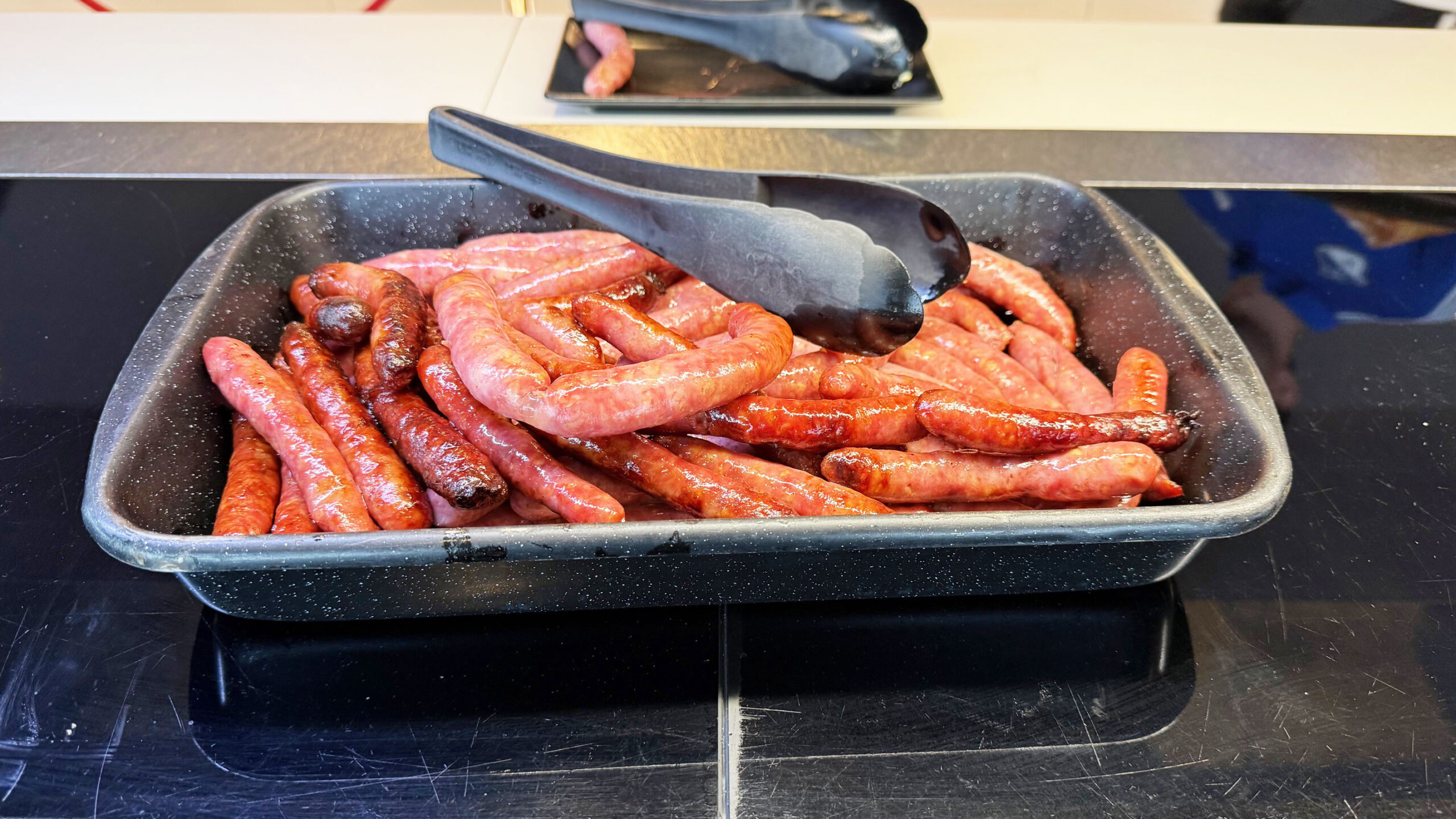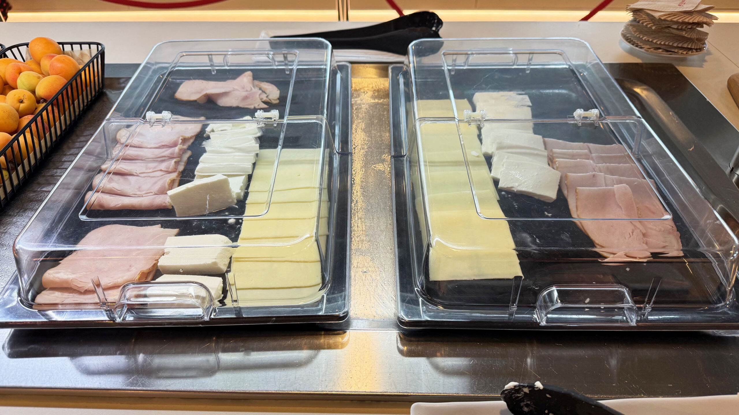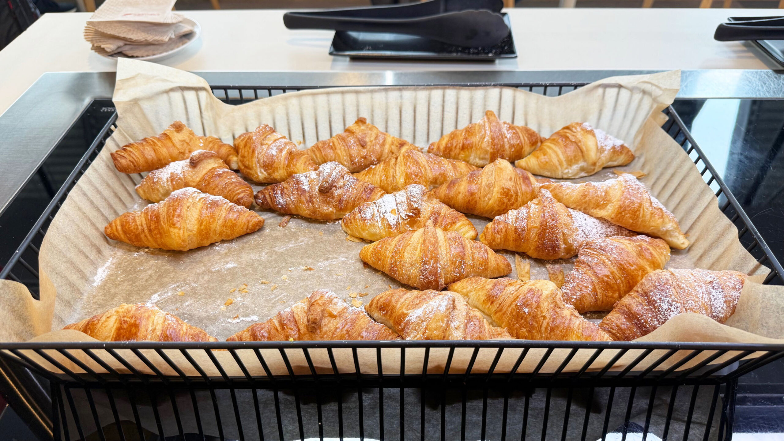 A alimentação é um dos pontos fortes desta sala VIP. Usei o espaço no café da manhã e encontrei muita variedade de pratos quentes e frios, além de frutas, iogurtes e até mesmo um cantinho para as crianças cheio de guloseimas.