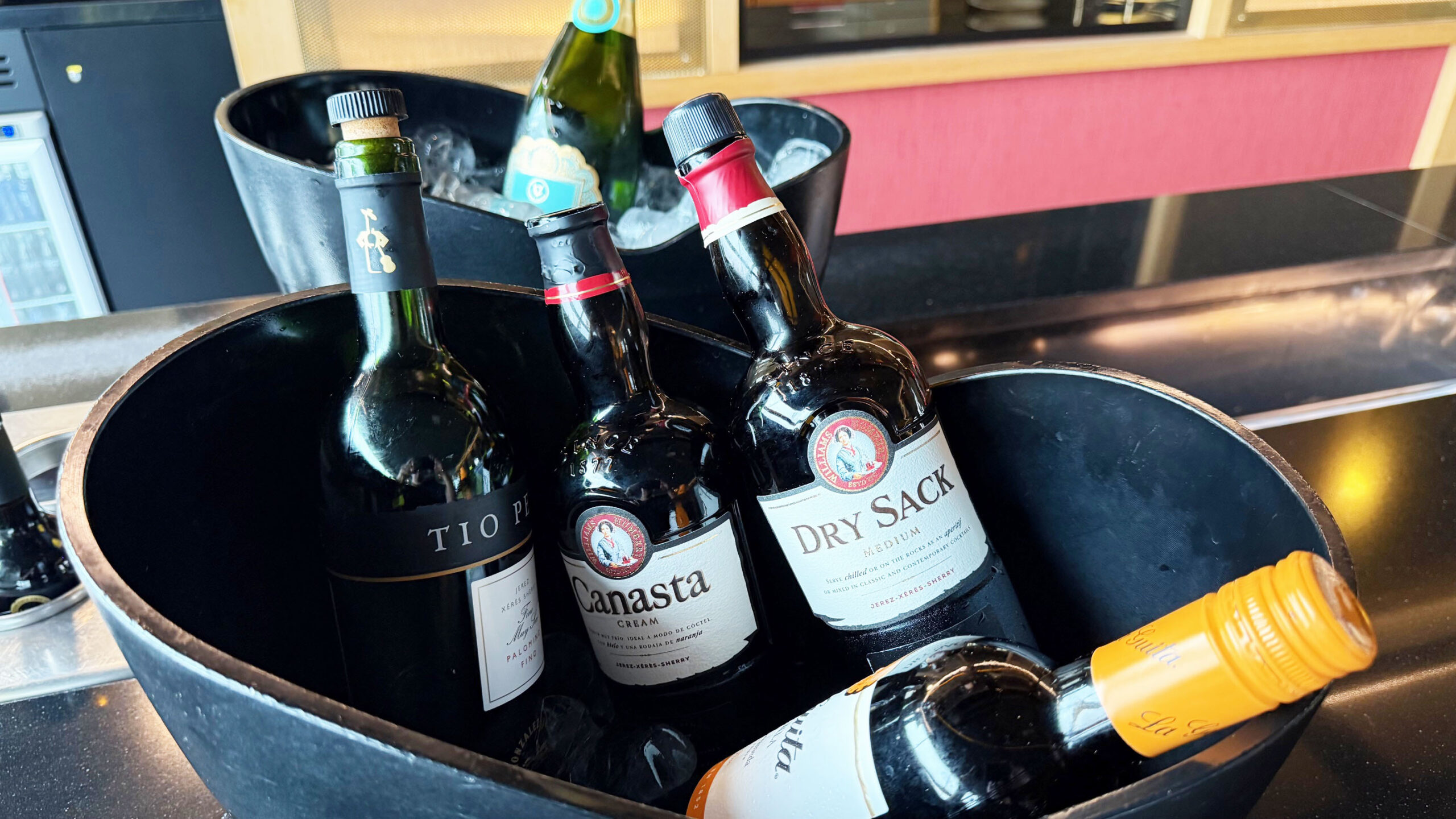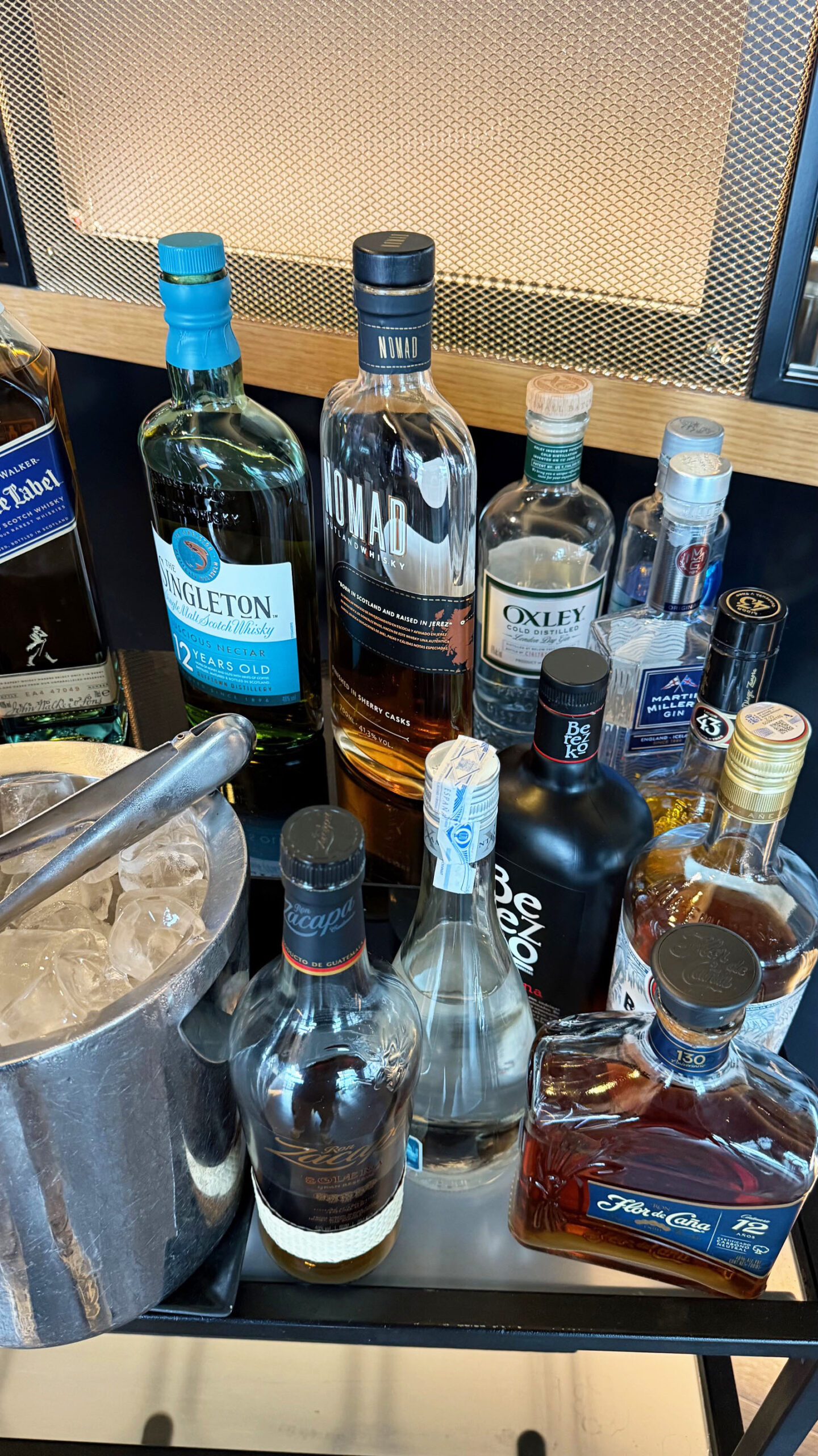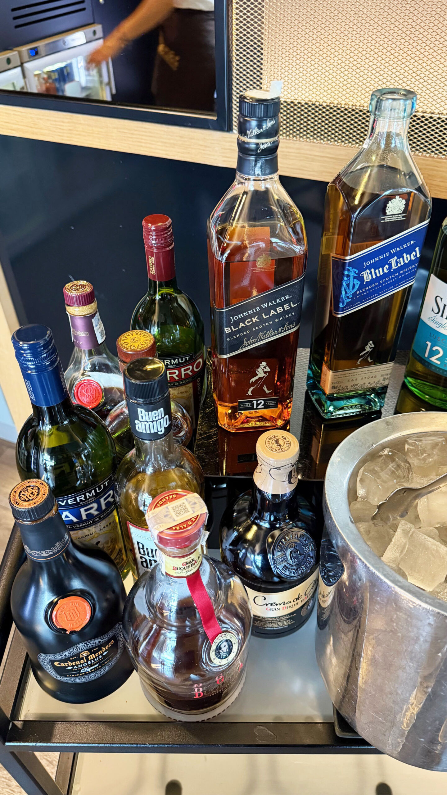 A oferta de bebidas é um dos grandes destaques. Há uma ampla variedade de opções alcoólicas, incluindo vinhos, espumante, whisky, gin, vodka, cervejas e muito mais. As opções são self-service, mas também há funcionários para ajudar.