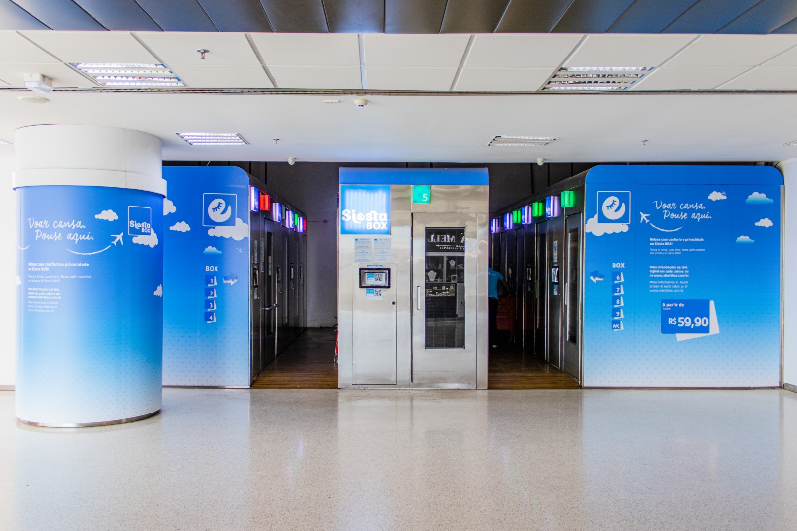 O SiestaBOX chegou aos aeroportos brasileiros com o objetivo de oferecer espaços para descanso e trabalho antes, durante ou após os voos. Uma das principais vantagens é a utilização dos convênios de salas VIP. Bastava passar o cartão com acessos LoungeKey ou Priority Pass para ter direito a duas horas dentro dos espaços.