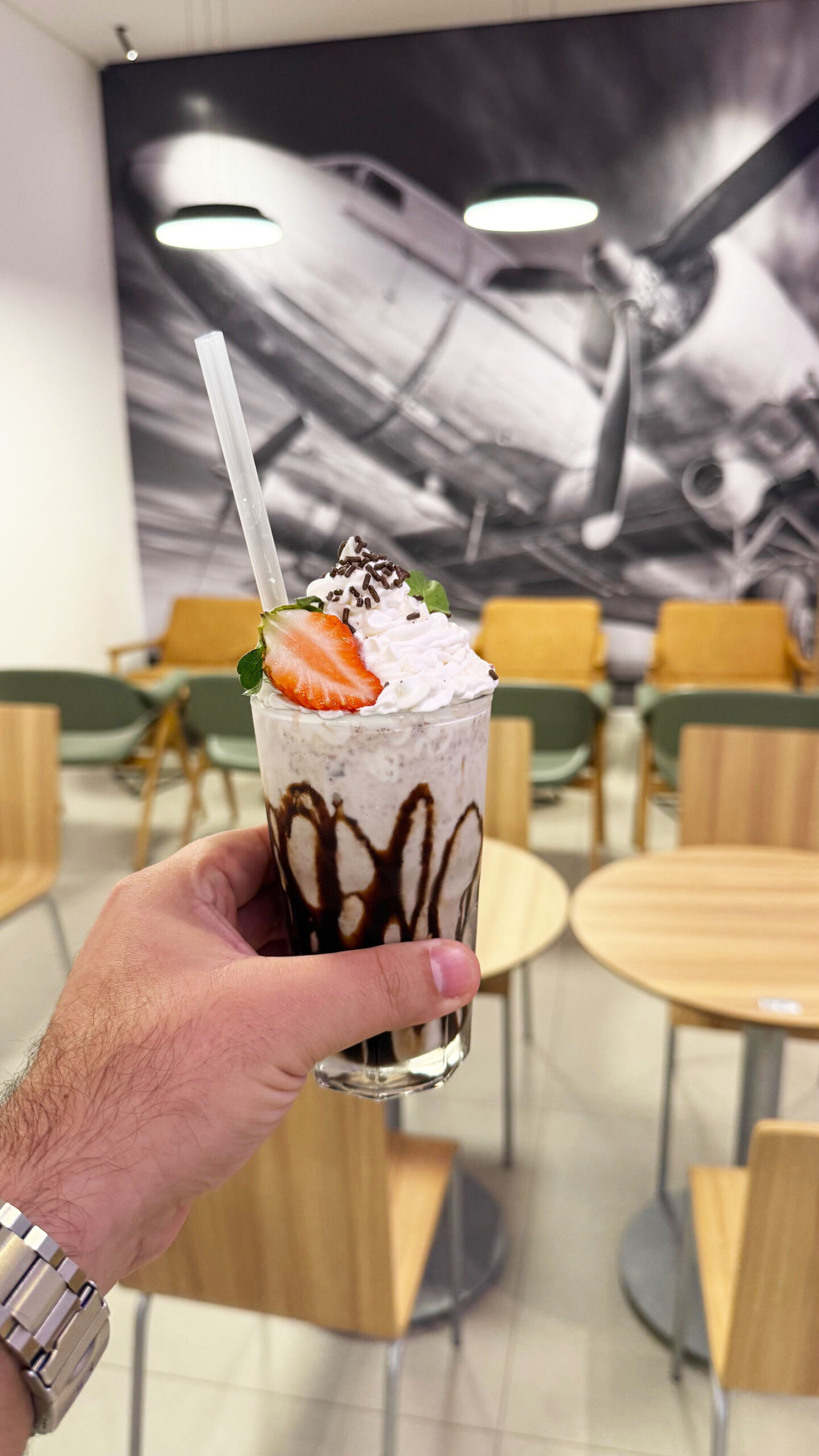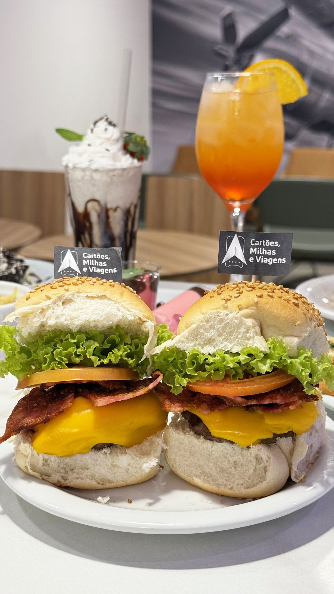 A novidade é que o The Lounge Florianópolis Internacional está servindo hambúrguer e milk-shake – duas opções que todo mundo gosta. Assim como todos os outros produtos, você não precisa pagar nada a mais. Basta solicitar no atendimento que serão preparados na hora.