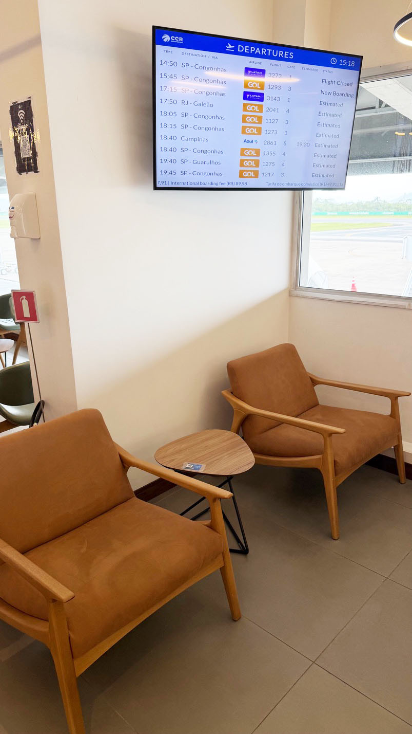 O The Lounge Navegantes é ótimo, oferecendo bom conforto aos passageiros mais exigentes. O aeroporto é extremamente simples, então poder esperar o voo dentro da sala VIP torna a experiência de viagem muito melhor – e você pode sair no último minuto para embarcar no seu voo, pois a distância é bem curta dos portões de embarque.
