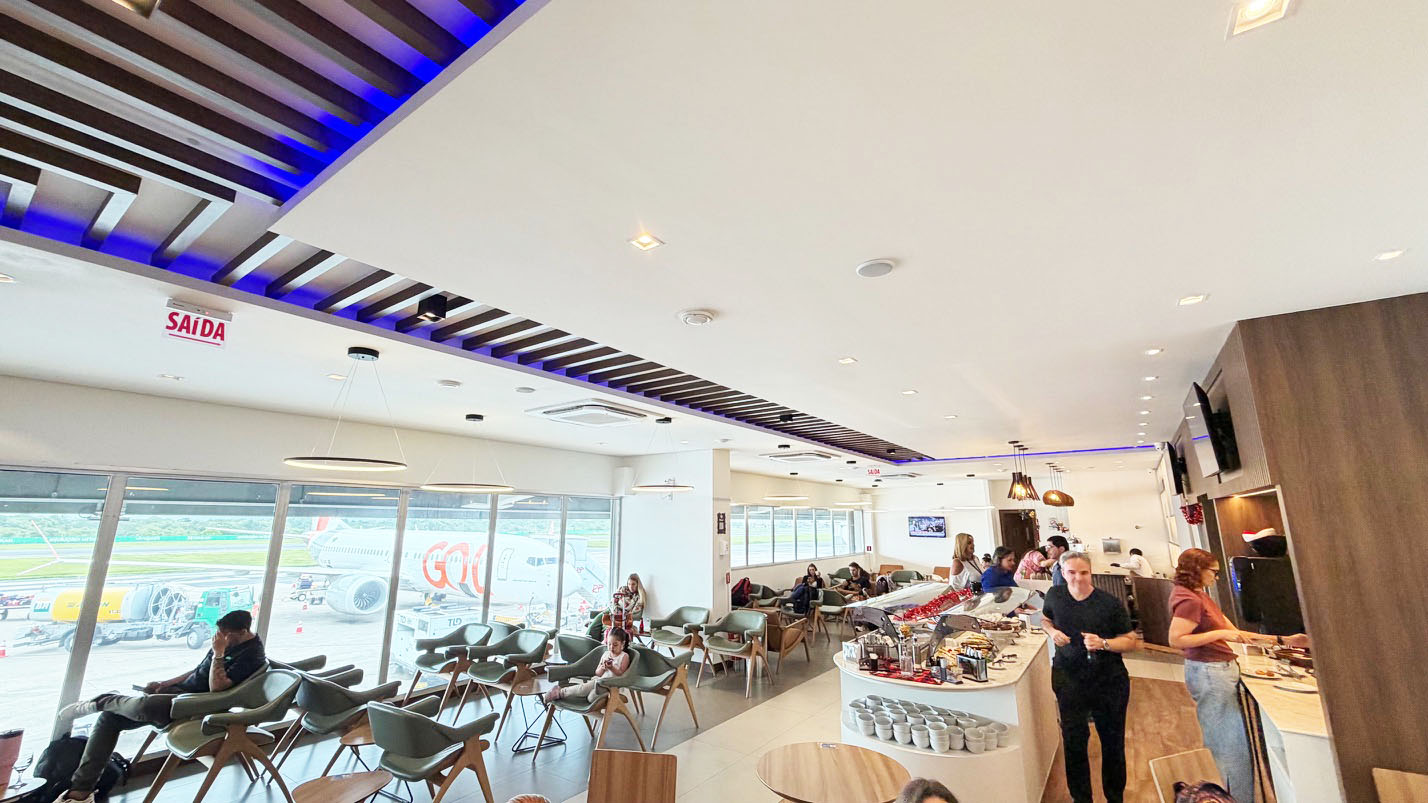 Além disso, o lounge comporta até 70 pessoas e oferece áreas de descanso bem separadas, espaço Zen para relaxar, business center para resolver pendências, além de espaço kids. É o tipo de sala que entrega experiência de verdade, não só um lugar para sentar e esperar o voo.