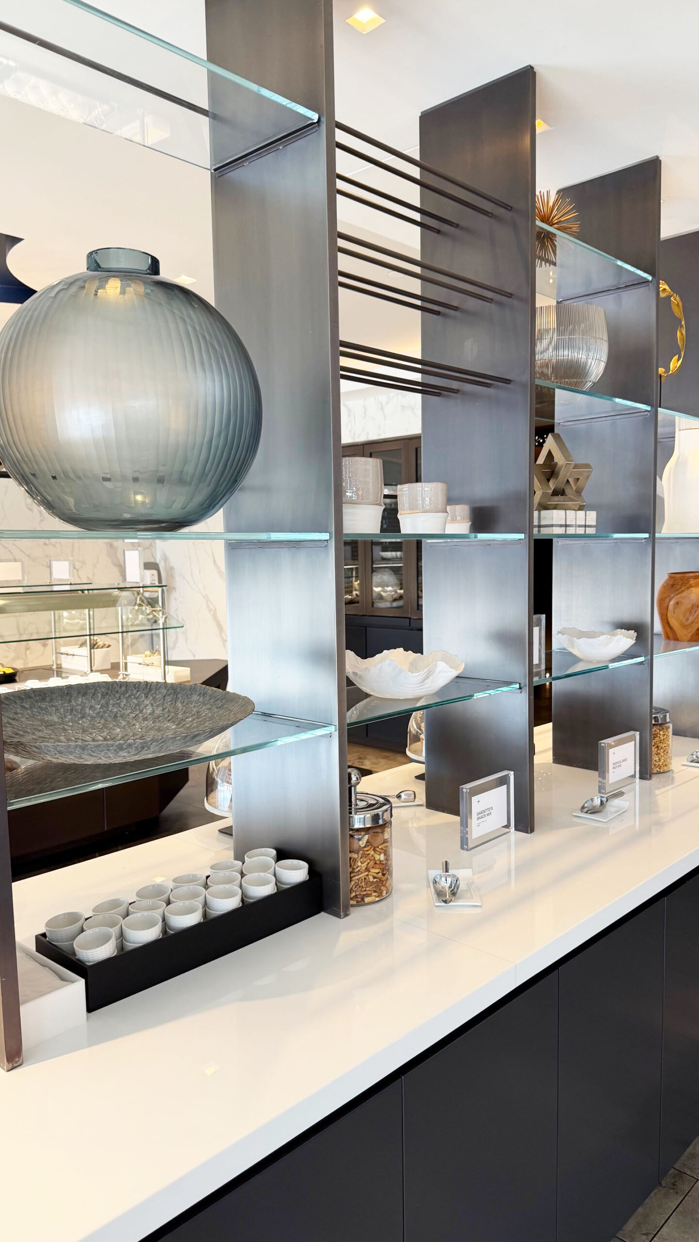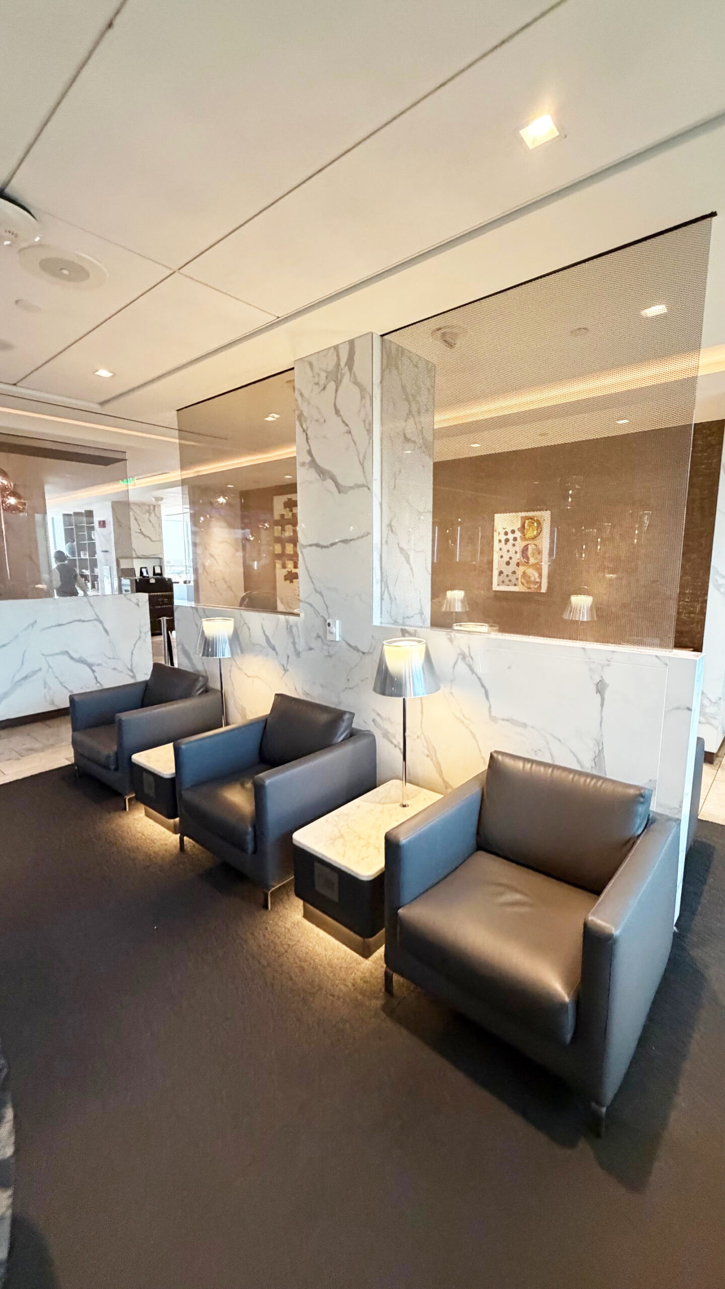Eu simplesmente adorei o Polaris Lounge. Ele é muito superior ao United Club. Aqui, sim, tive a sensação de estar em uma sala VIP de verdade – com espaços amplos, decoração arrojada e um atendimento impecável por parte da equipe.