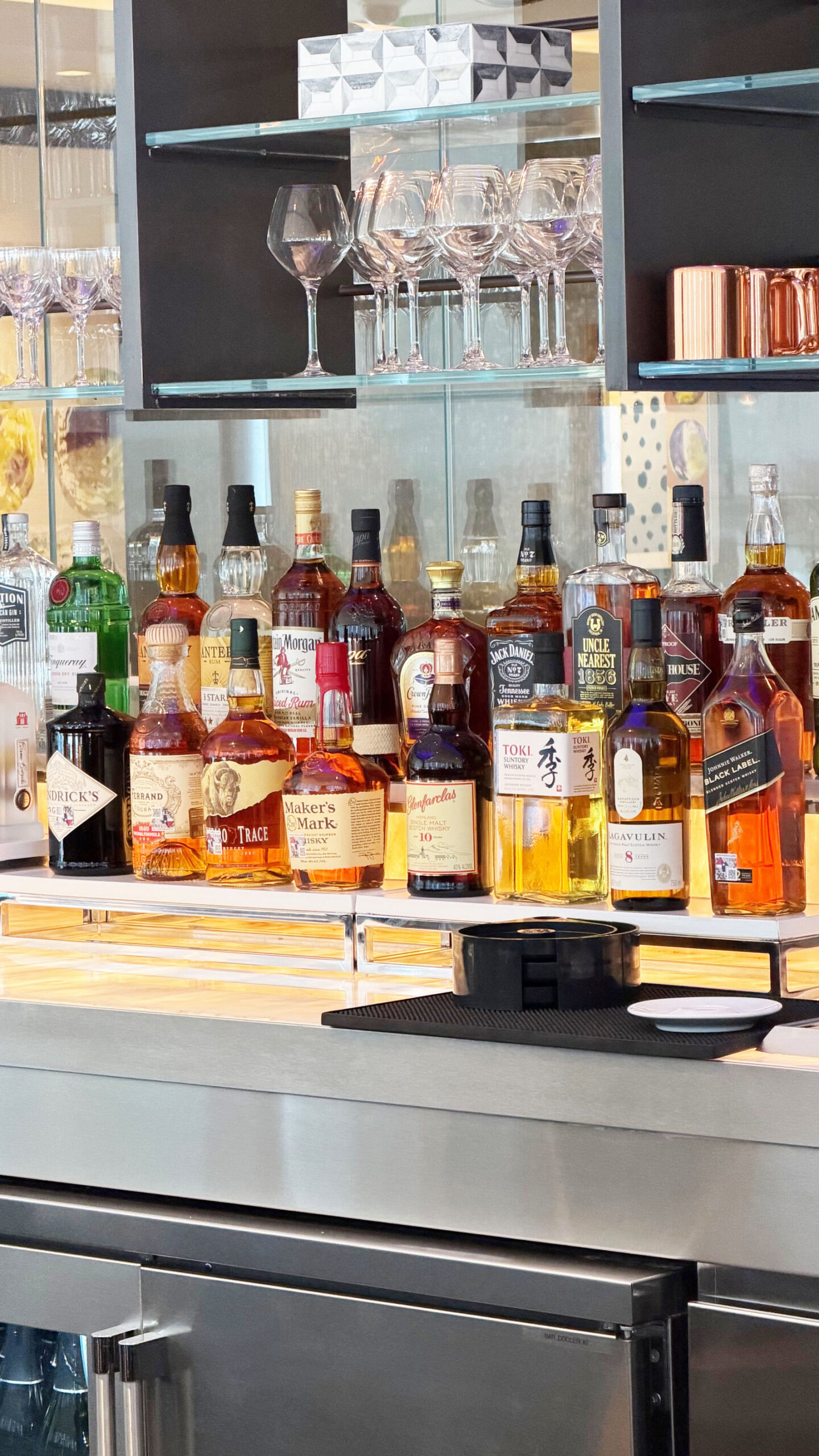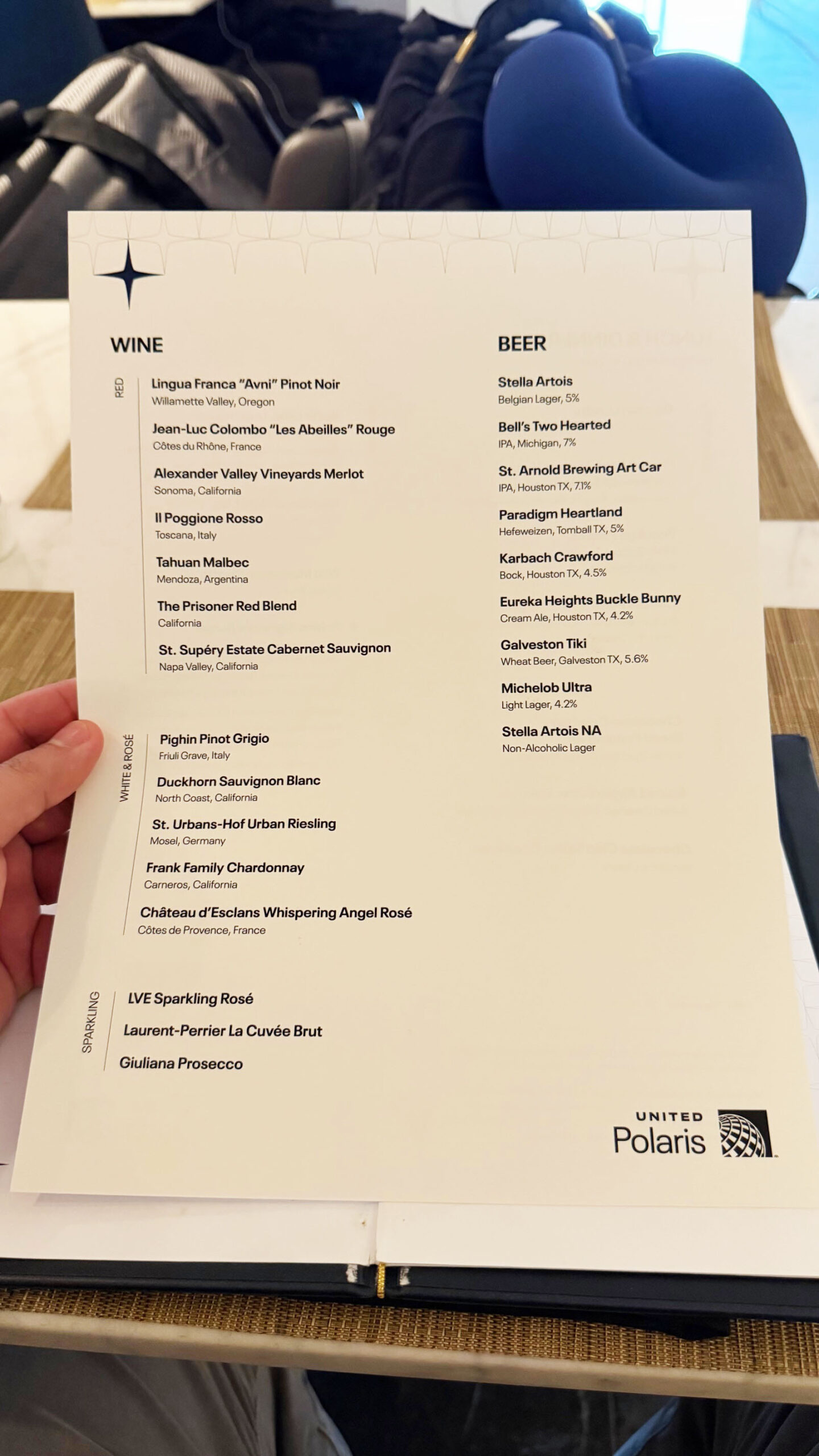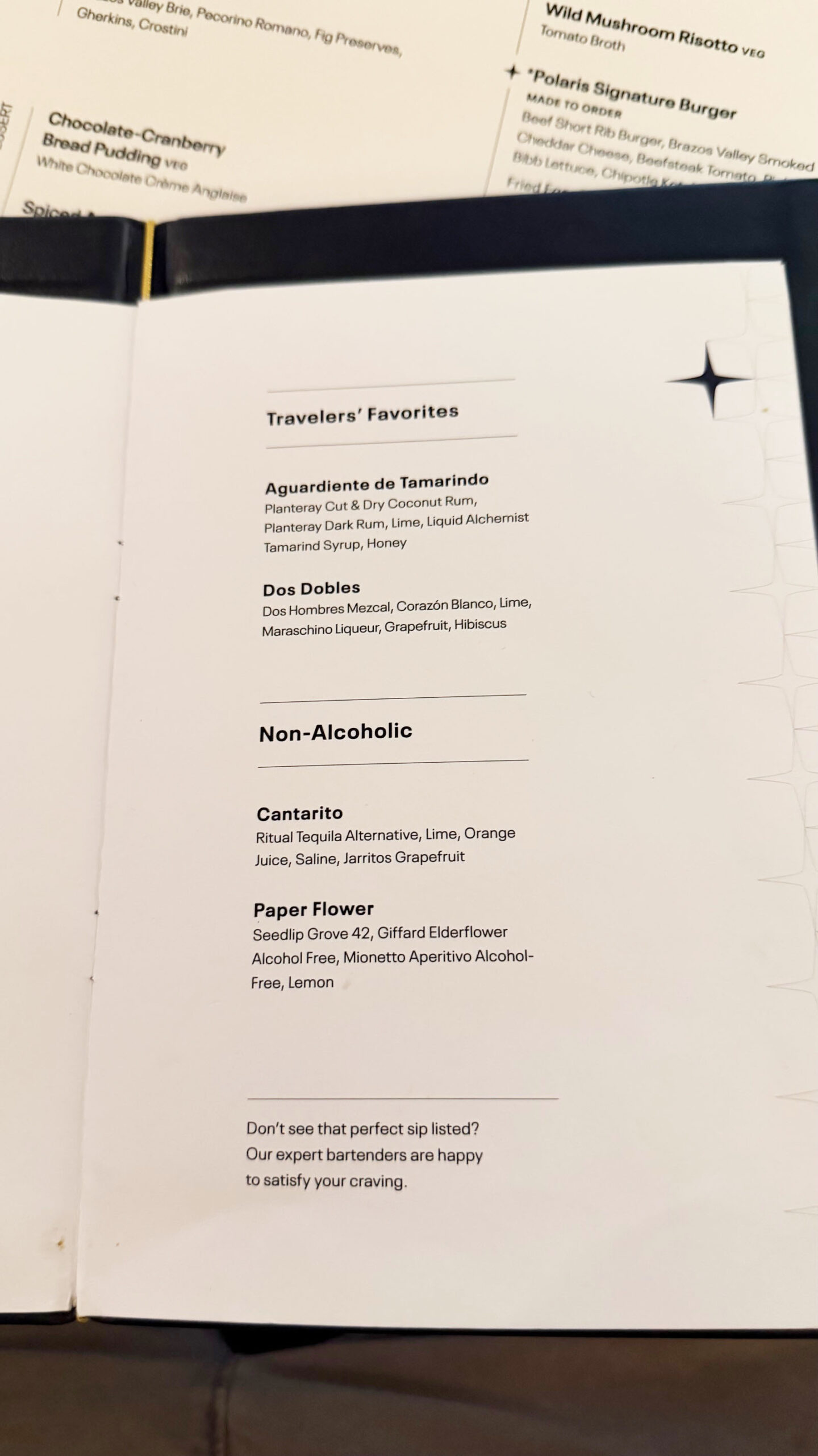 O bar, outro ponto alto do lounge, apresenta uma carta de drinks exclusivos criada especialmente para a marca Polaris. Entre os destaques estão o United Polaris Star, com infusão de flor de ervilha-borboleta e licor de gengibre, e o Supersonic Flight, que combina tequila, manga, abacaxi e um toque de pimenta caiena. Para os apreciadores de vinho, há rótulos de diferentes regiões – da Califórnia à Toscana – e champanhes como o Laurent-Perrier La Cuvée Brut.