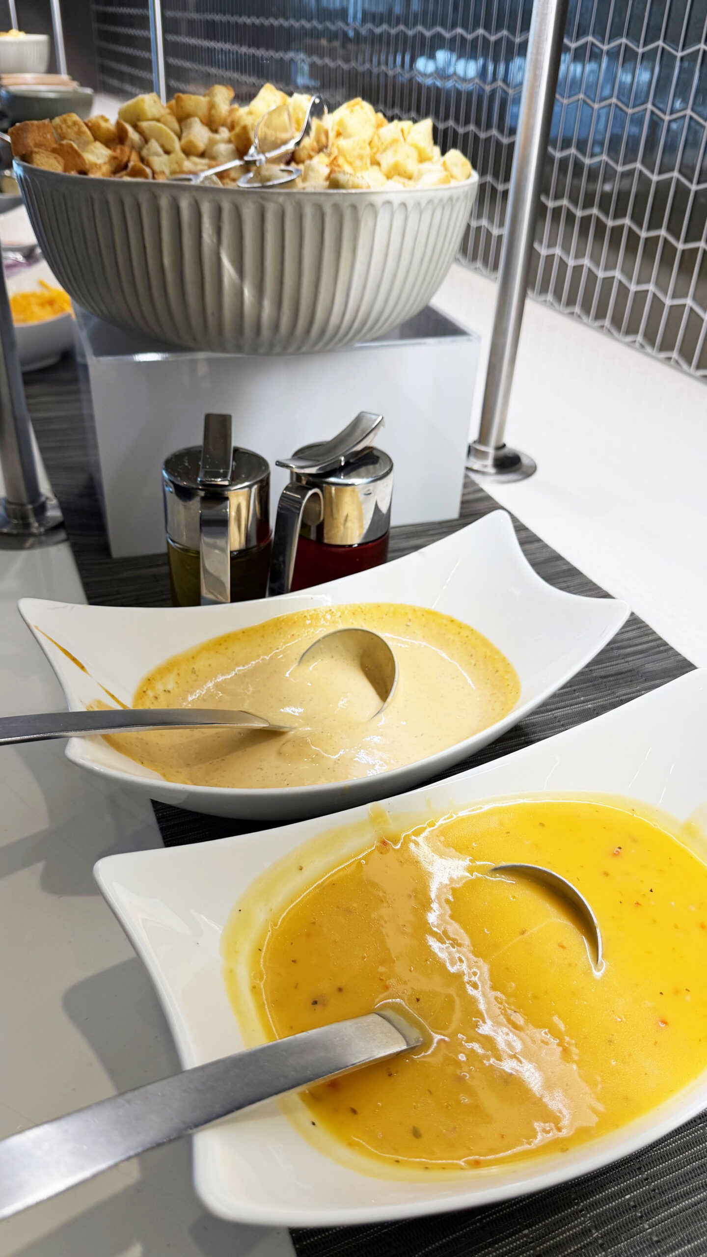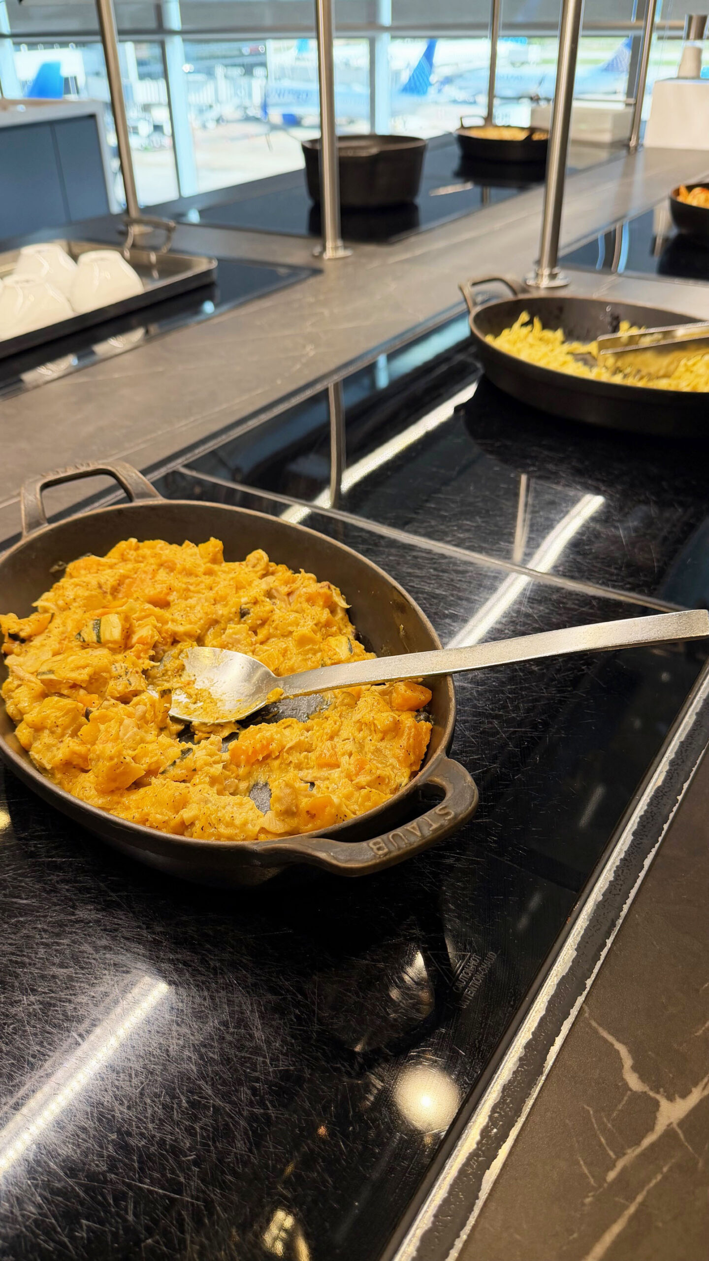 A alimentação é um dos pontos fortes desta sala VIP. Diferente do United Club, onde muitas vezes o cardápio decepciona, o Polaris Lounge oferece um bufê self-service com variedade e qualidade. Seja no café da manhã, almoço ou jantar, há sempre boas opções disponíveis.