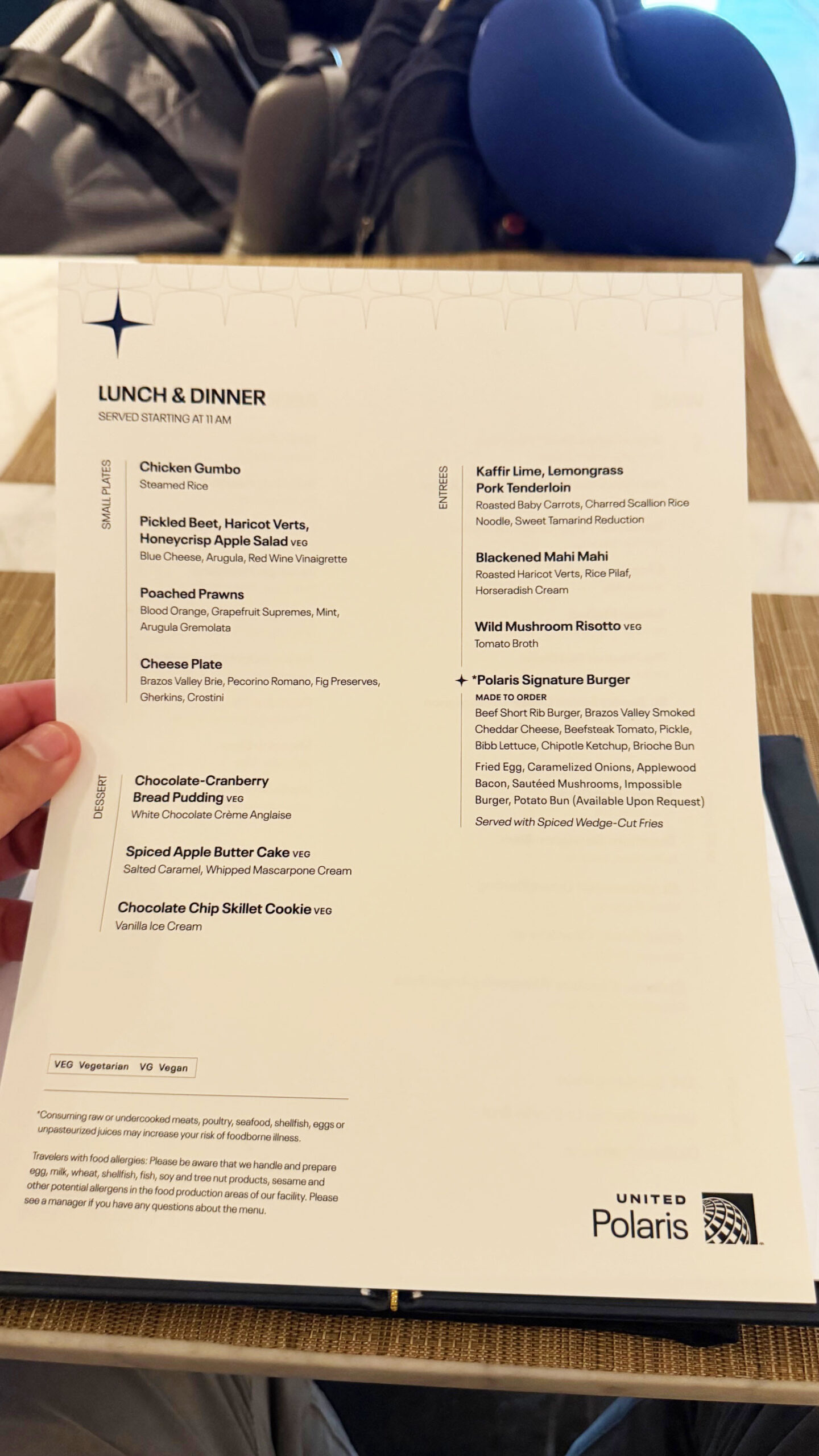 Além do ambiente refinado, lounge oferece uma experiência gastronômica de restaurante completo. O cardápio à la carte inclui opções elaboradas como o Polaris Signature Burger – preparado com short rib, cheddar defumado e brioche artesanal – além de pratos como risoto de cogumelos, filé suíno ao tamarindo e mahi-mahi grelhado.