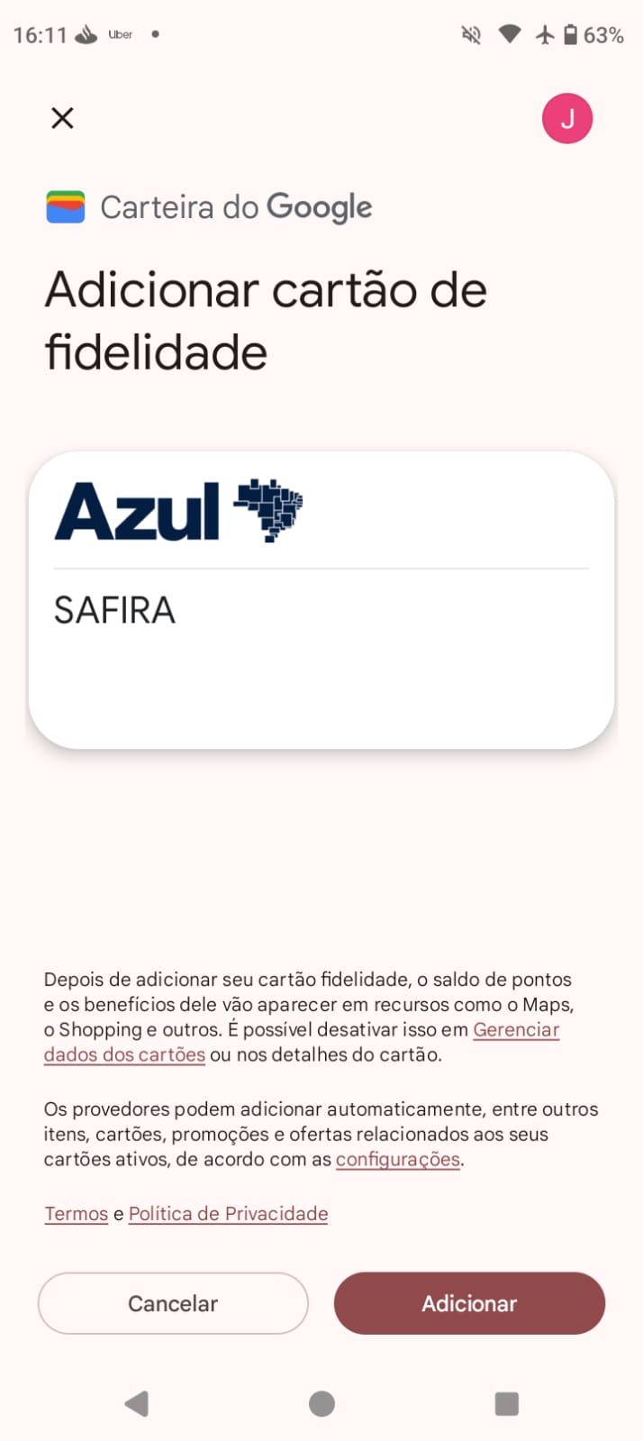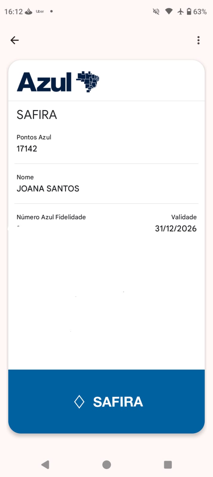 Seu cartão fidelidade pode ser facilmente acessado pelo aplicativo da companhia aérea, na aba que contém o seu nome. Adicione-o à carteira para começar a usufruir da funcionalidade.