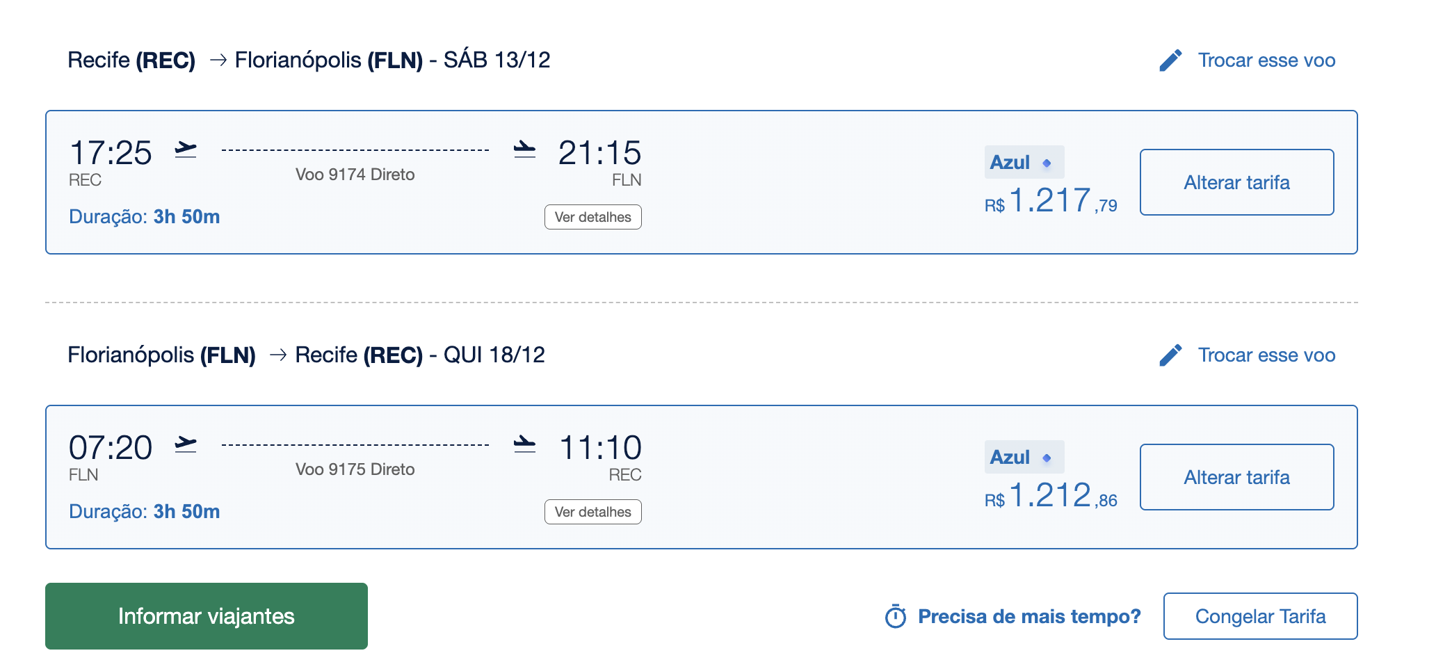 | Recife (18 de dezembro) | 2h50 | Florianópolis | 6h40 | Quintas-feiras |
