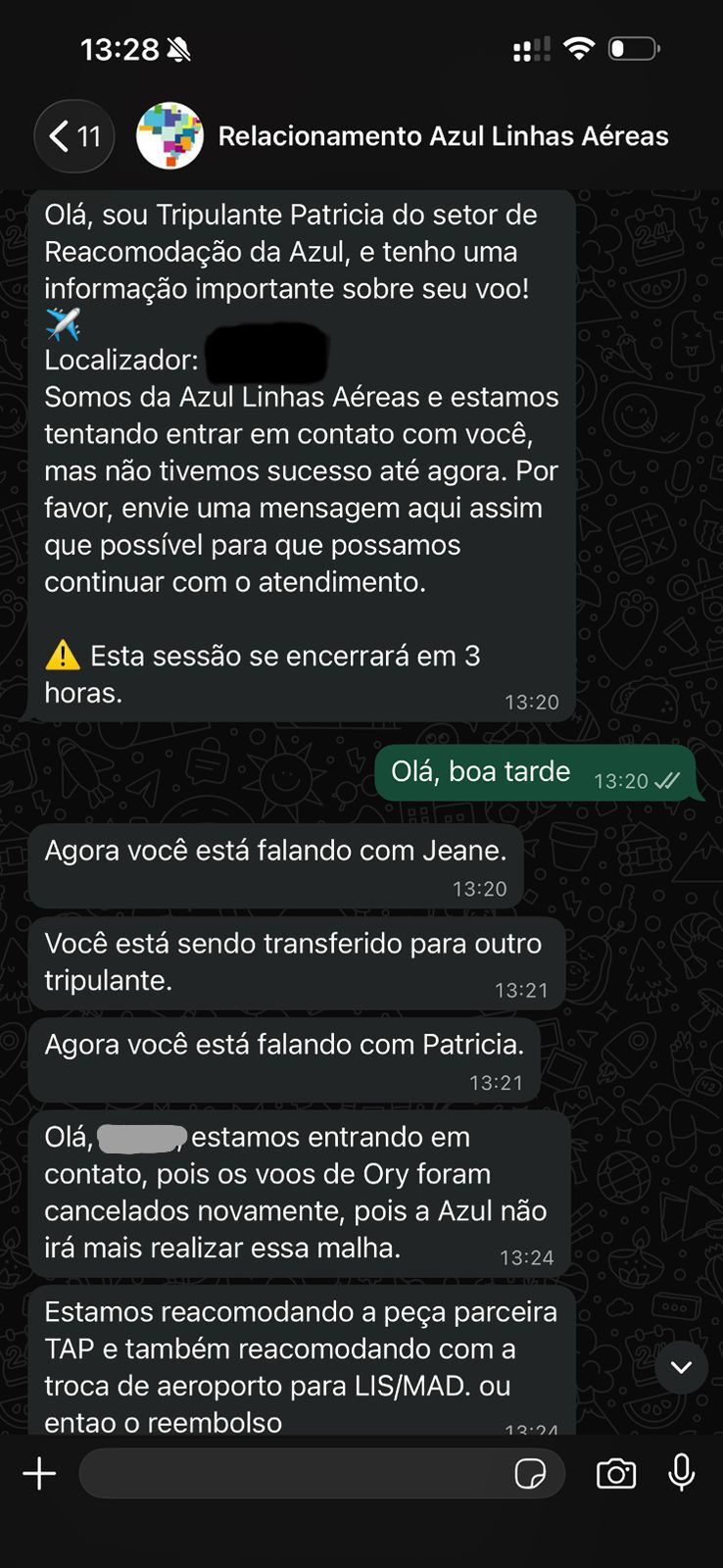 Caso você possua passagem emitida para esse trecho, entre em contato com a Azul o quanto antes para verificar as opções disponíveis de remarcação, cancelamento ou reembolso dos bilhetes.