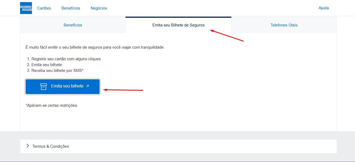 Você vai precisar emitir a apólice, chamada de Bilhete de Seguro, que é uma exigência global de qualquer cartão de crédito que oferece o benefício. Sem essa emissão, você não está segurado.