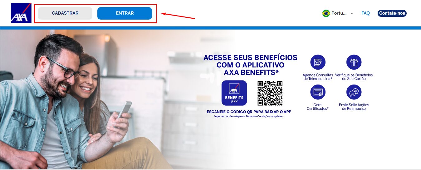 Você será redirecionado ao site da AXA Assistance (seguradora responsável). Faça login ou crie uma conta.