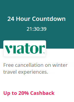 Ganhe até 20% de cashback ao comprar passeios e atrações através do site Viator.com. A oferta é válida através da plataforma TopCashback. Aproveite! Válido somente até amanhã de manhã (8hs).