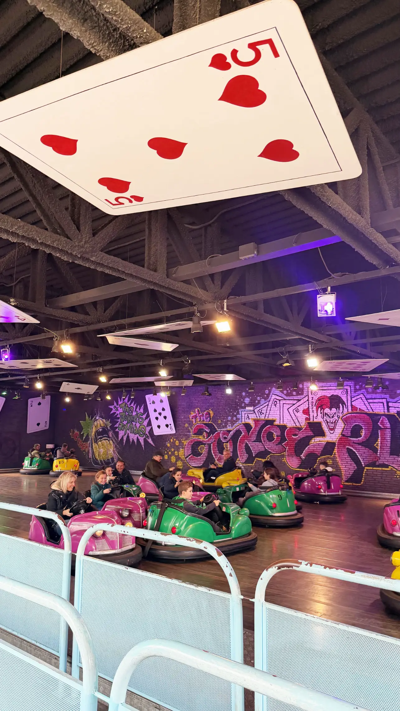 O Coringa tomou conta do estacionamento, criou suas próprias regras e espalhou o caos, enquanto os visitantes se divertem batendo os carrinhos uns nos outros.