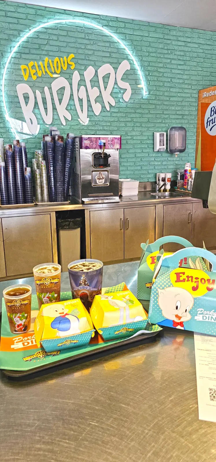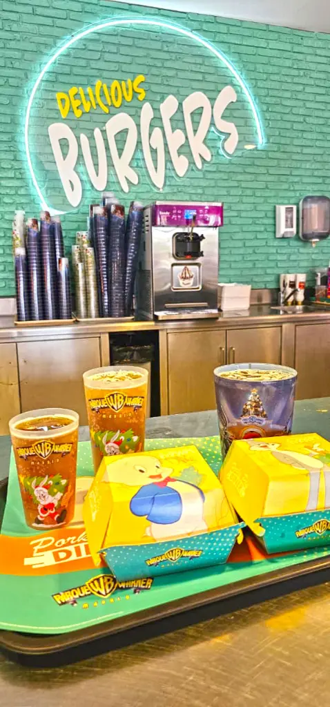 Clássico e divertido, o Porky Pig Diner serve refeições rápidas em estilo diner americano, com hambúrgueres e lanches que agradam tanto crianças quanto adultos.
