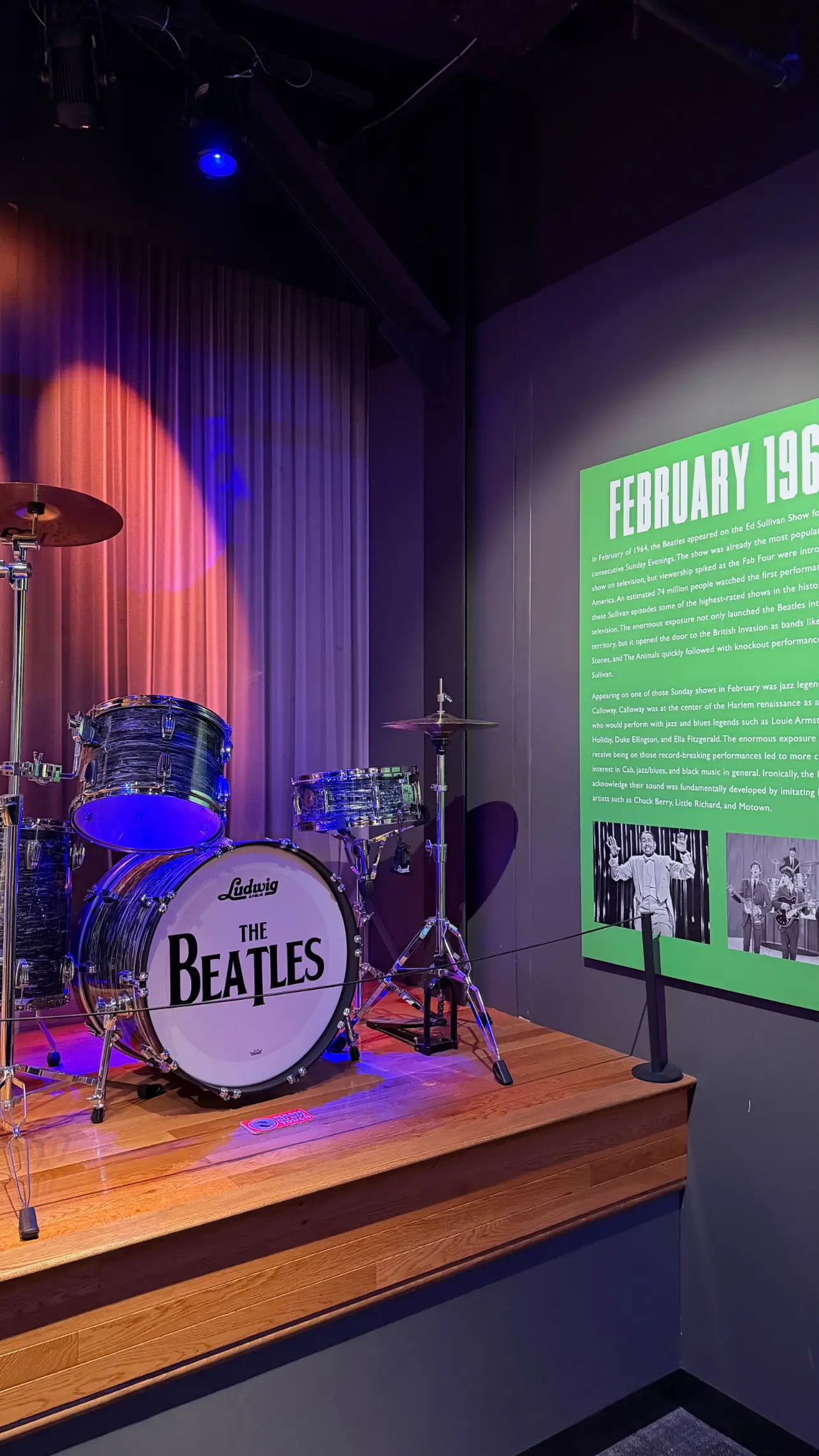 Entre os itens exibidos, você encontra memorabilia ligada à banda, como figurinos e instrumentos que ajudam a contar como a cidade foi palco de momentos decisivos da música mundial.