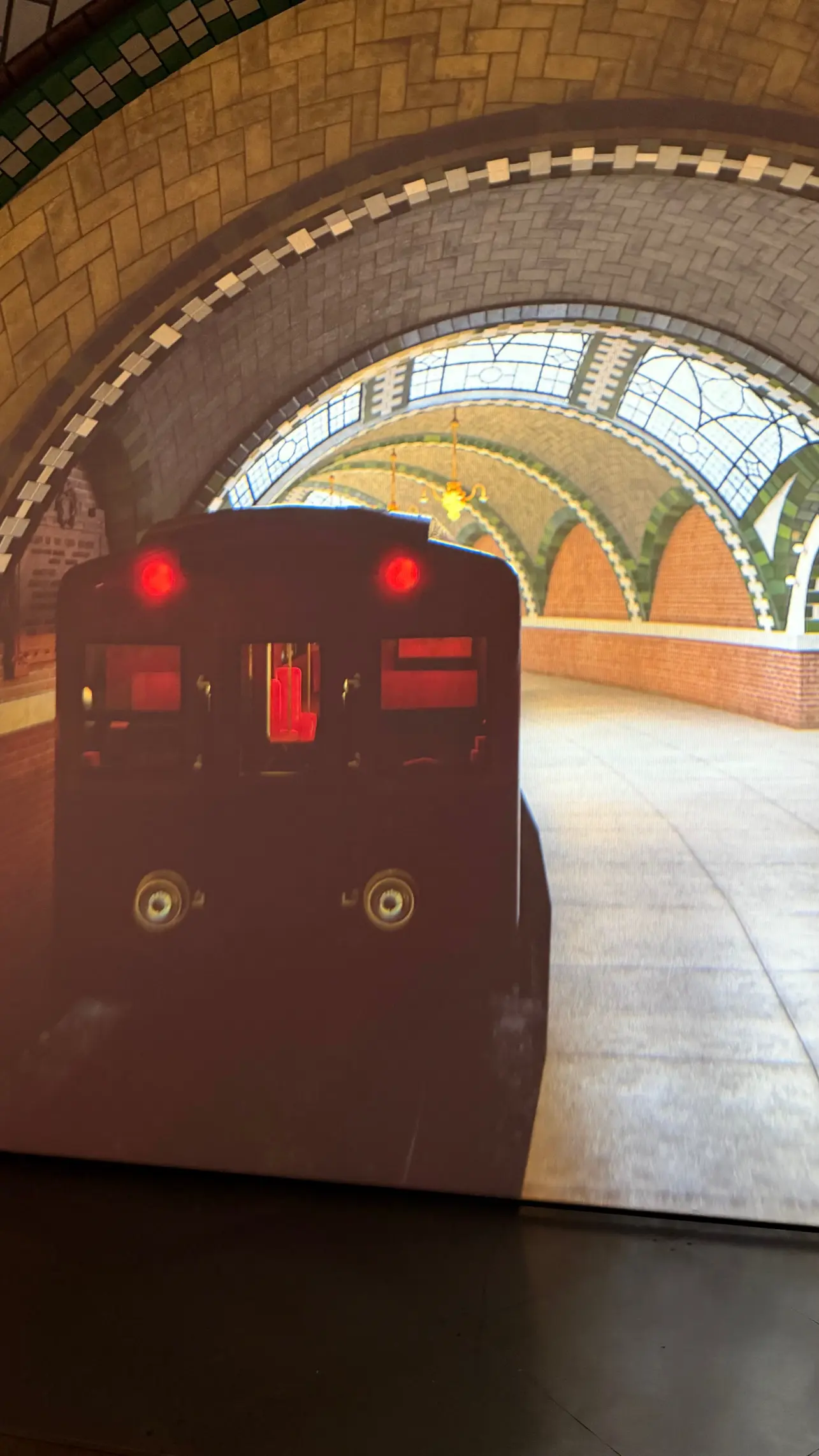 A visita começa dentro de uma réplica da primeira estação de metrô da cidade, a histórica City Hall Station. É um detalhe cenográfico que já mostra o cuidado da atração com ambientação.