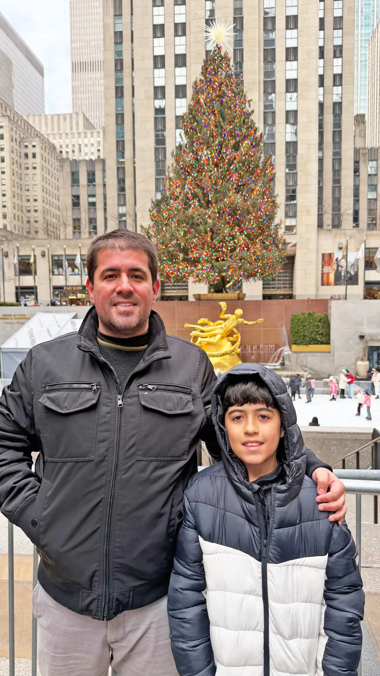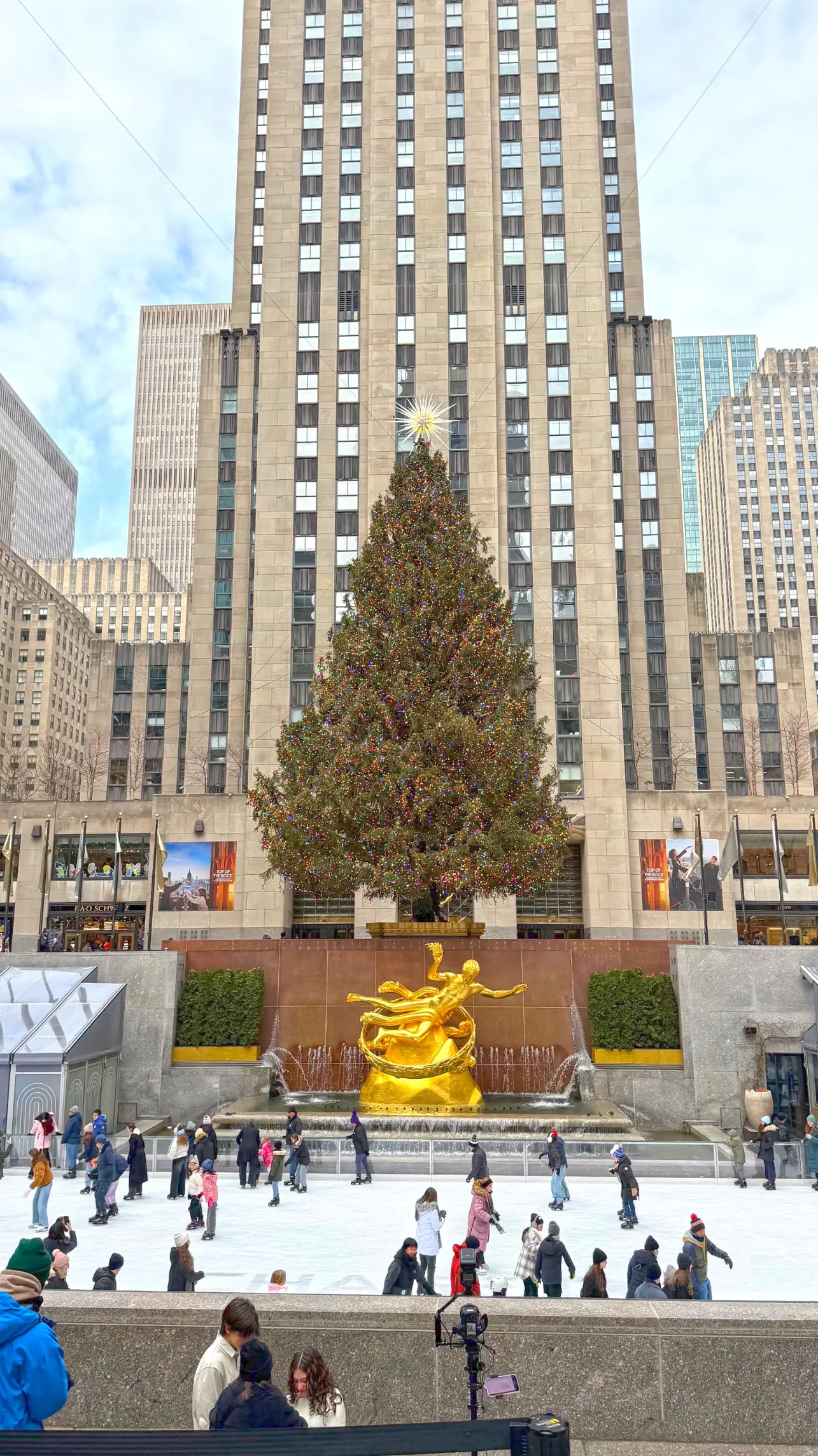 Ver a árvore de Natal do Rockefeller Center pessoalmente continua sendo uma experiência emocionante. Com criança, então, o impacto é ainda maior. O brilho das luzes, a música ambiente e a energia da praça criam um clima realmente especial. Foi um daqueles momentos simples e memoráveis da viagem.