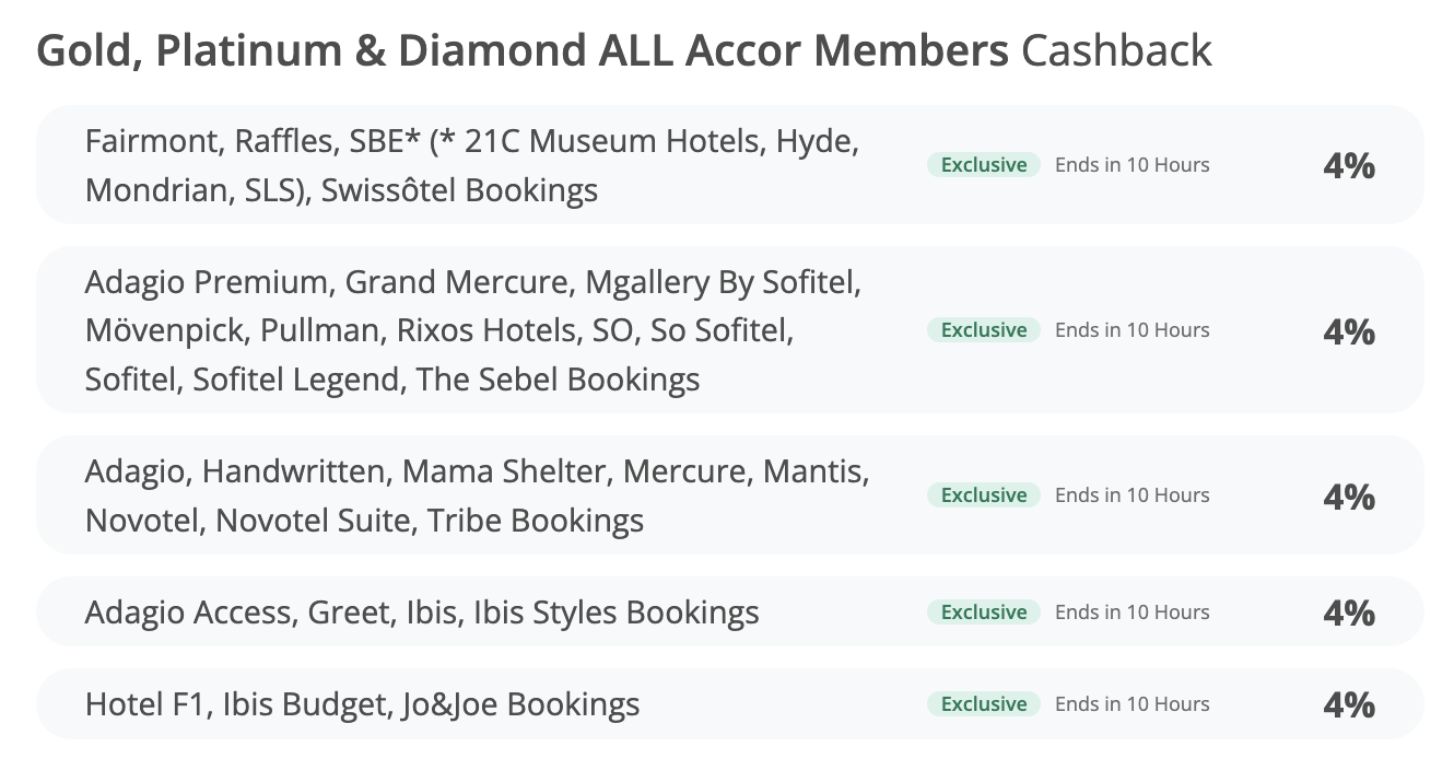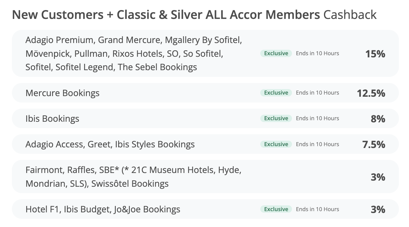 3 – Vai ser exibido o cashback por rede de hotéis da Accor